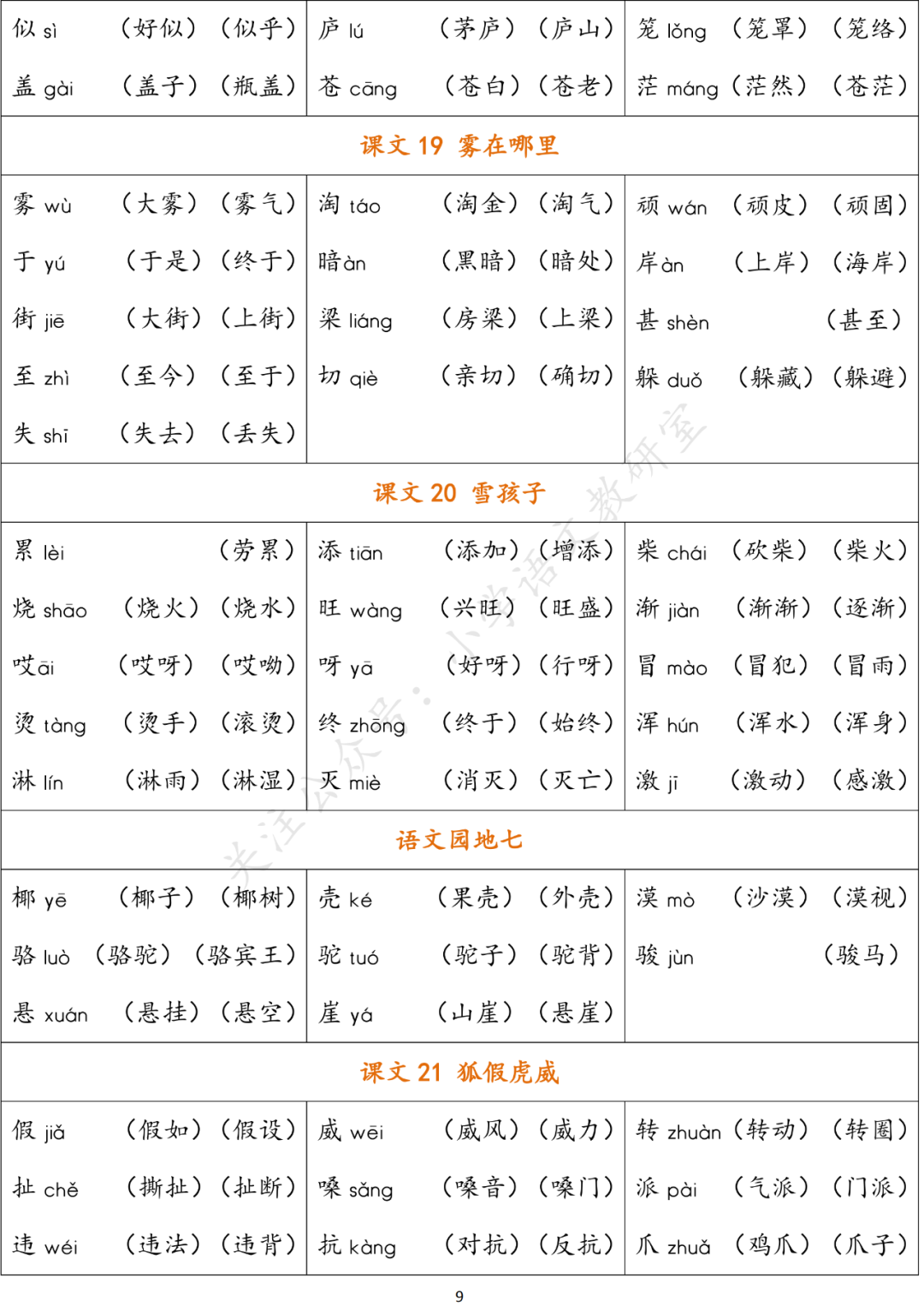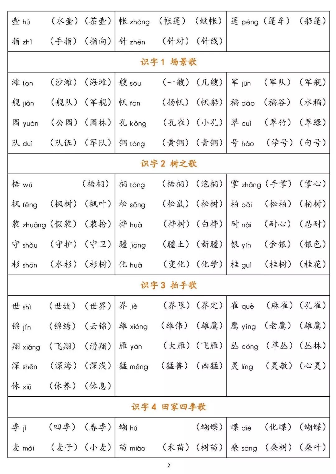 统编版语文二年级(上)生字组词汇总丨可下载打印