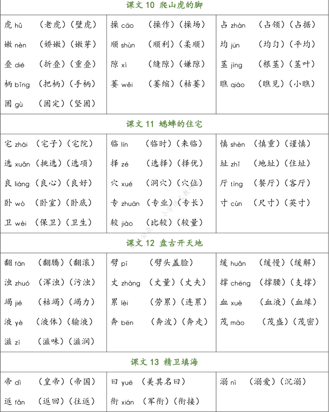 统编版语文四年级(上)生字组词汇总丨可下载打印