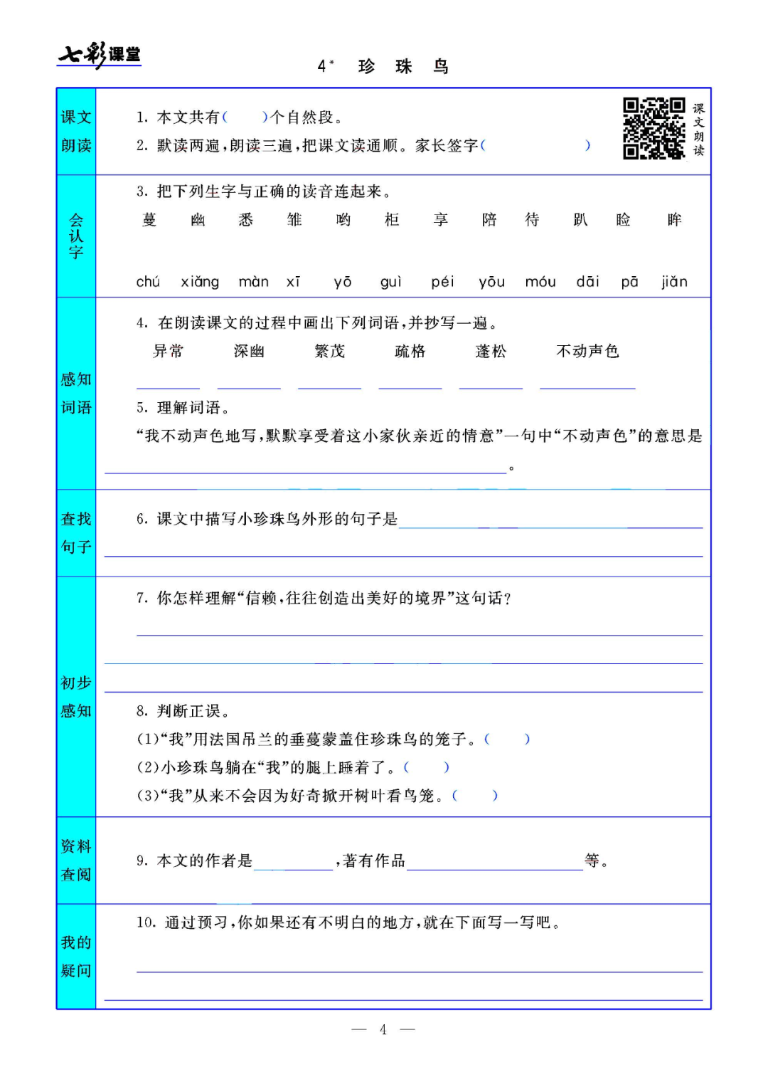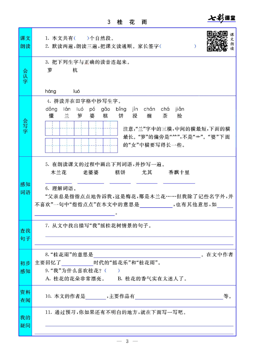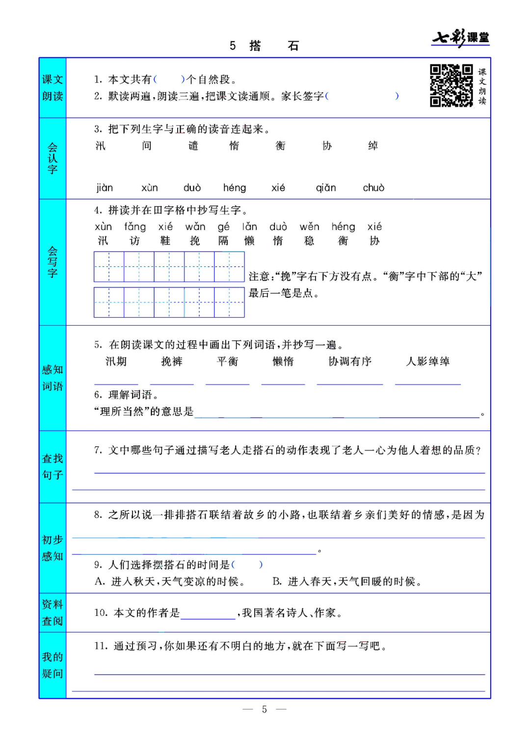 统编版语文五年级(上)课文预习卡丨可打印