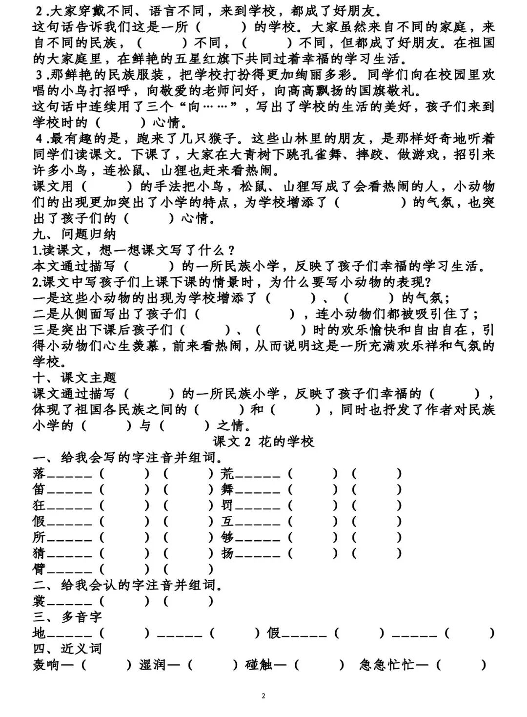 课文通过描写边疆的一所民族小学,反映了孩子们幸福的学习生活,体现了祖国各民族之间的友爱和团结,同时也抒发了作者对民族小学的自豪与赞美之情。