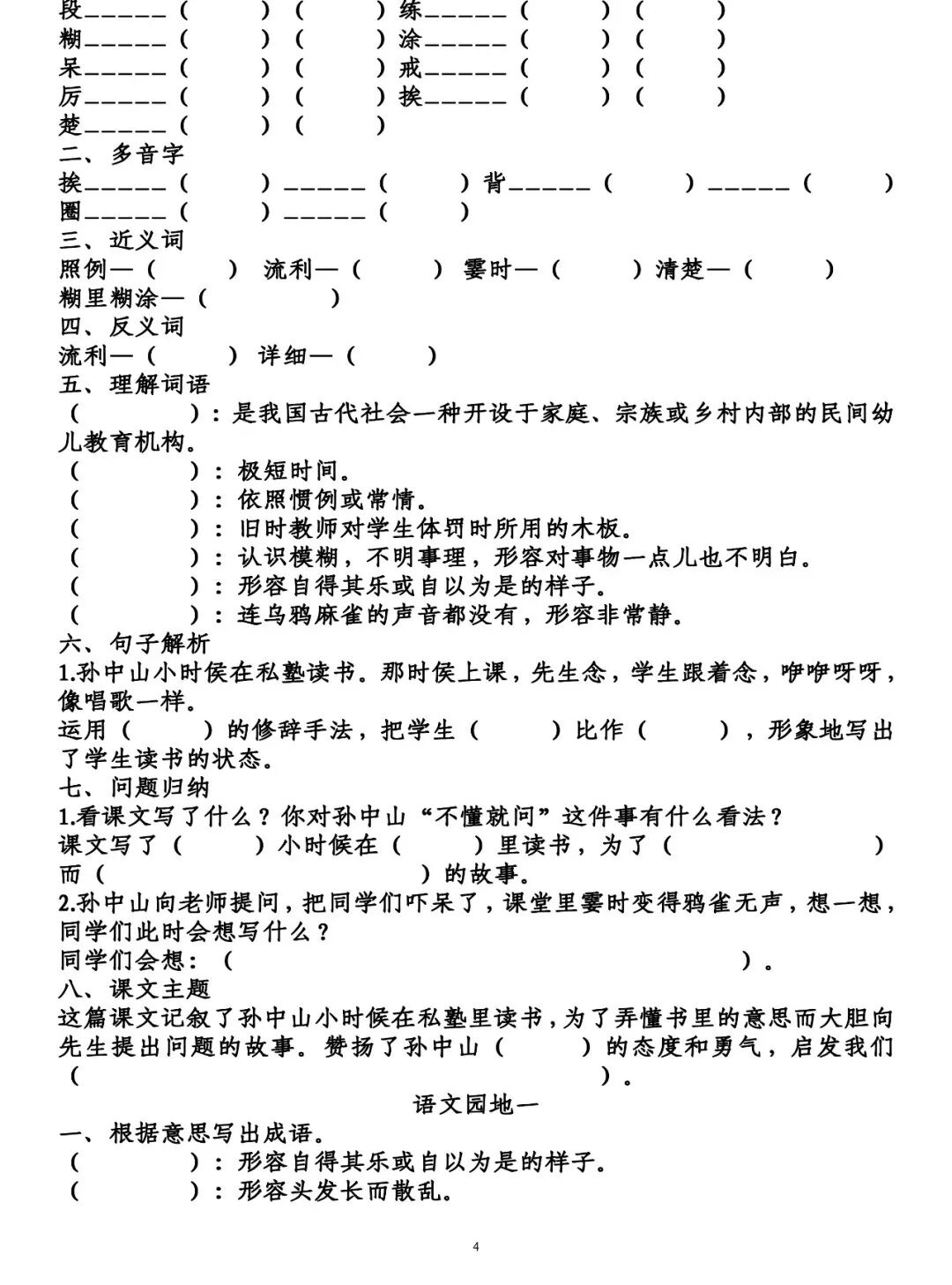 这篇课文记叙了孙中山小时候在私塾里读书,为了弄懂书里的意思而大胆向先生提出问题的故事。赞扬了孙中山不懂就问的态度和勇气,启发我们遇到不懂的问题要敢于去问。