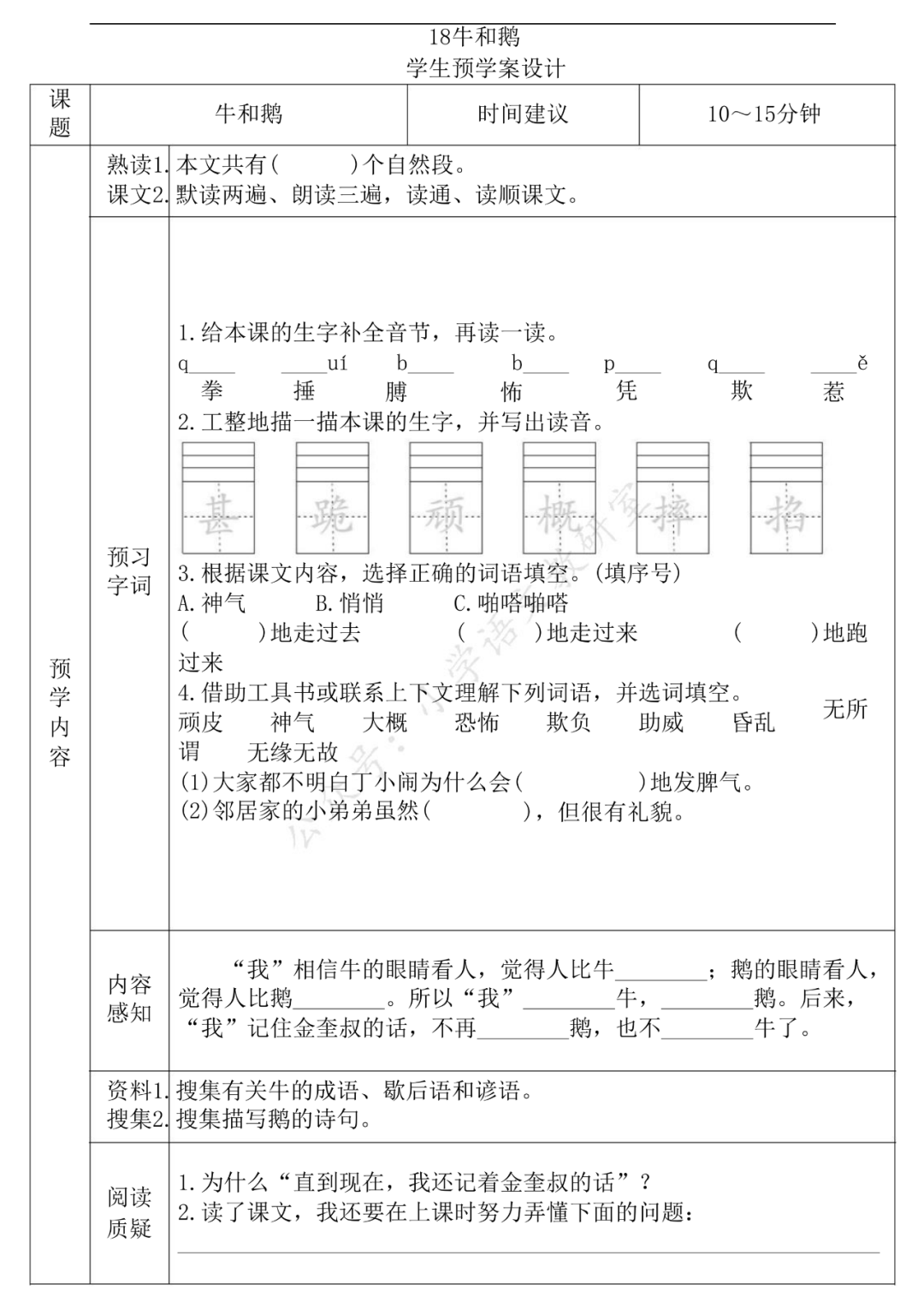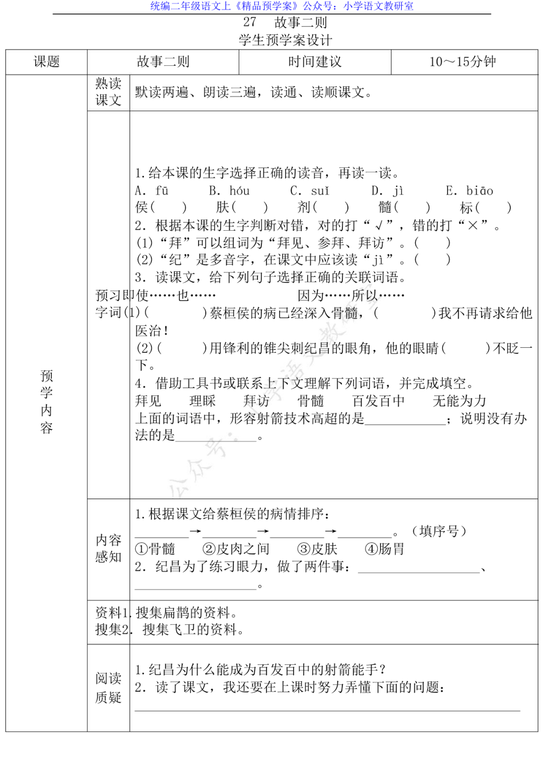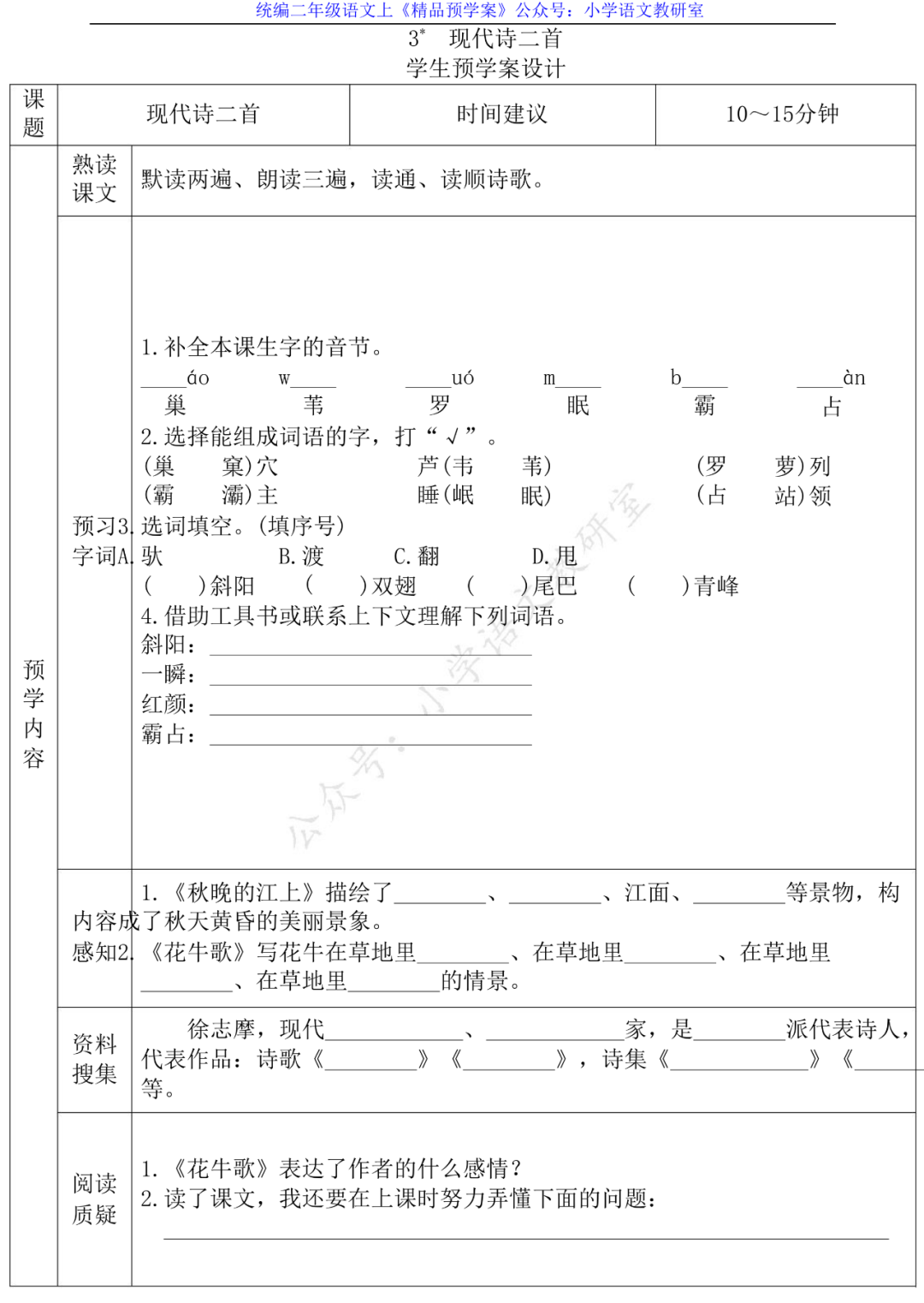 关注后发送消息”预习学案”