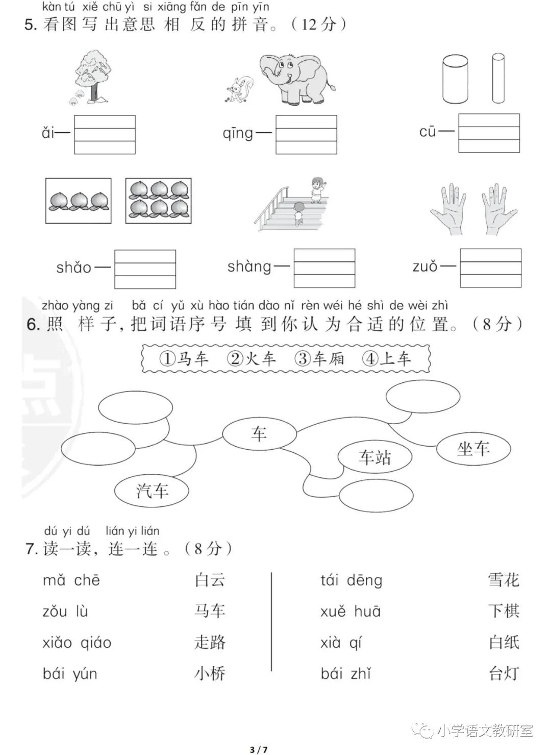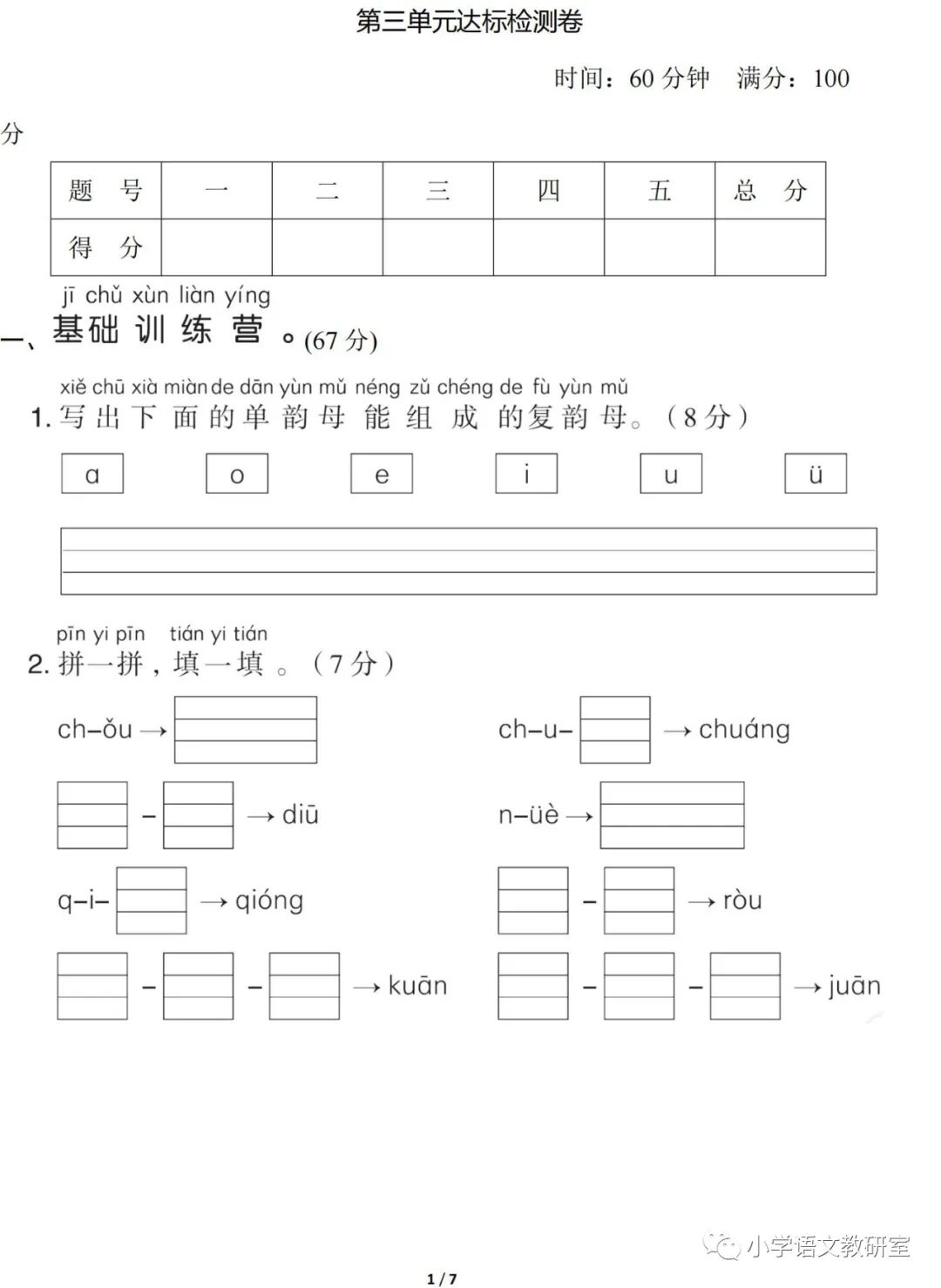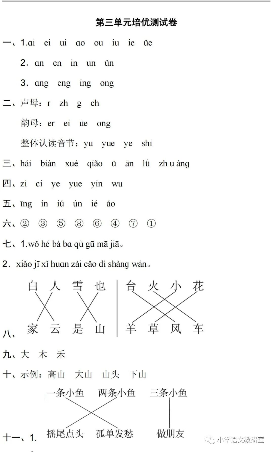 2021统编版语文一年级(上册)第三单元试卷多套,可打印