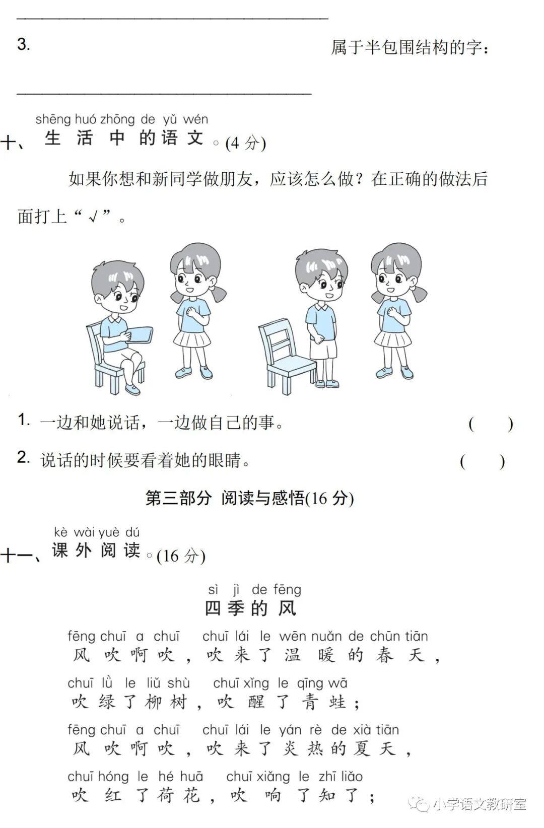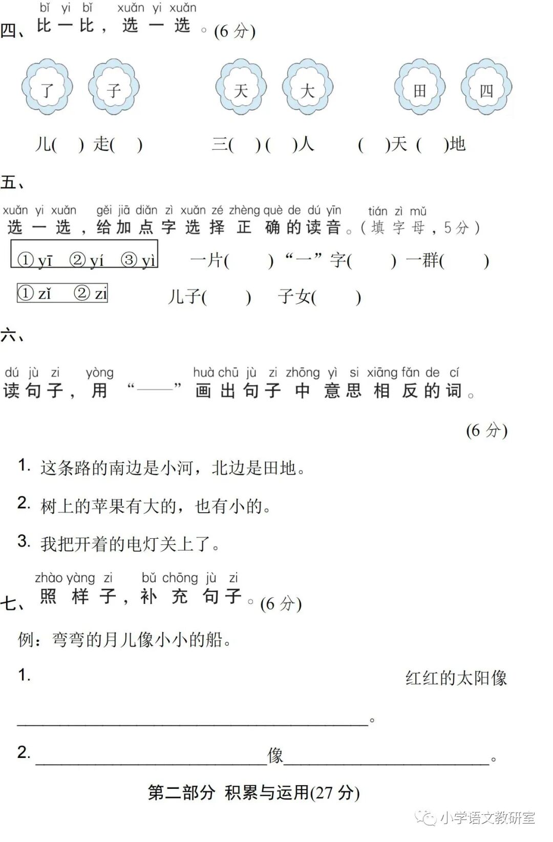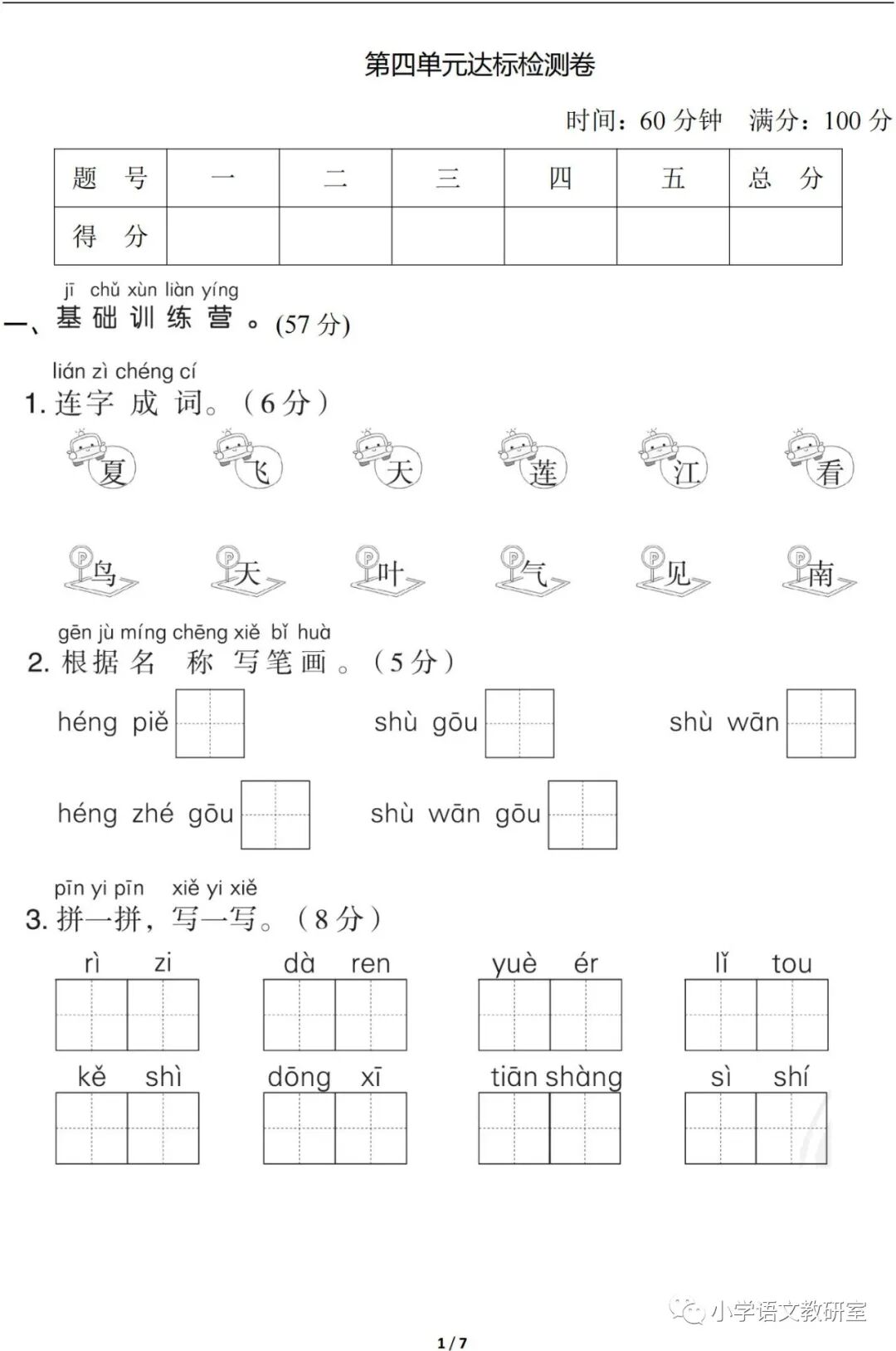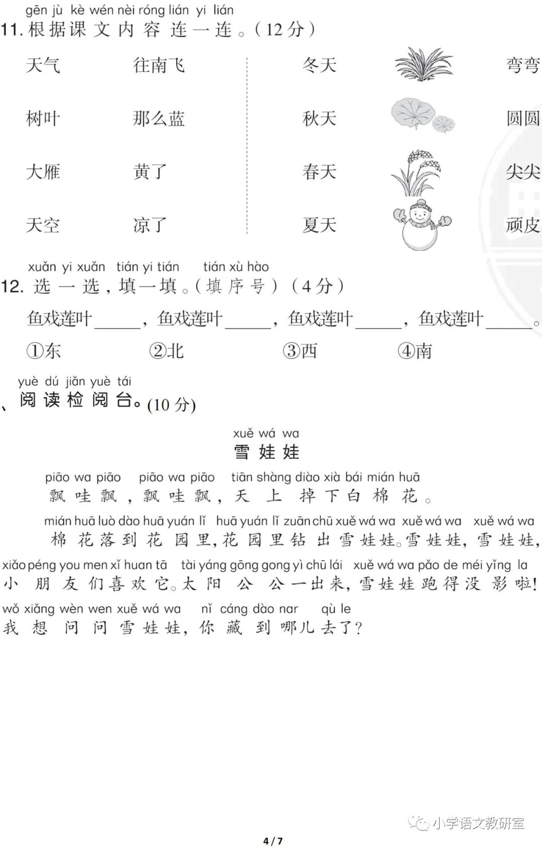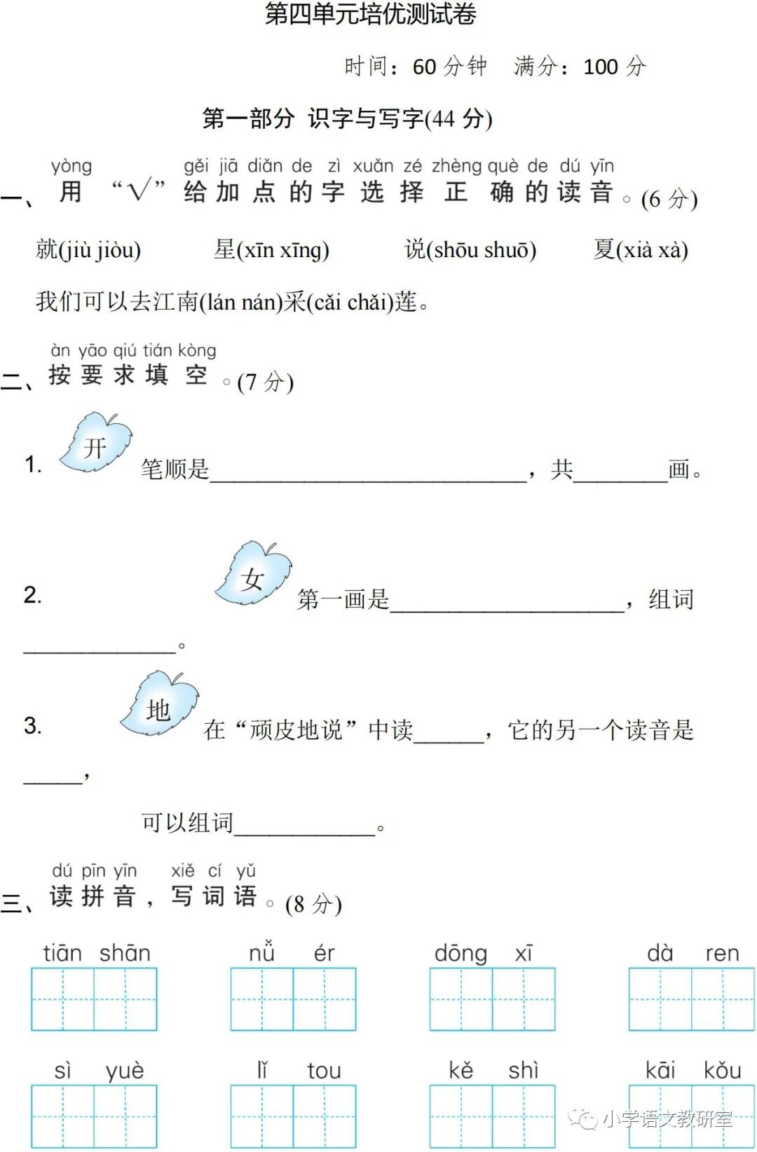 2021统编版语文一年级(上册)第四单元试卷多套,可打印