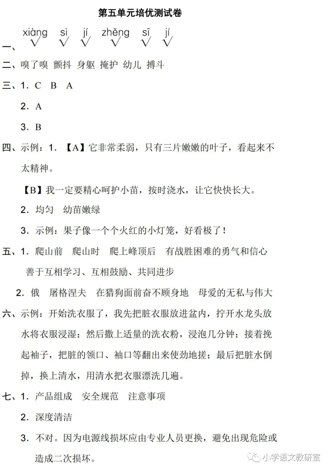 为了让孩子巩固第五单元知识点,教研室的耿老师特意为大家,精心整理了第五单元测试题、答案,多套,都是今年的新试卷,建议各位老师和家长领取,打印给孩子练习!