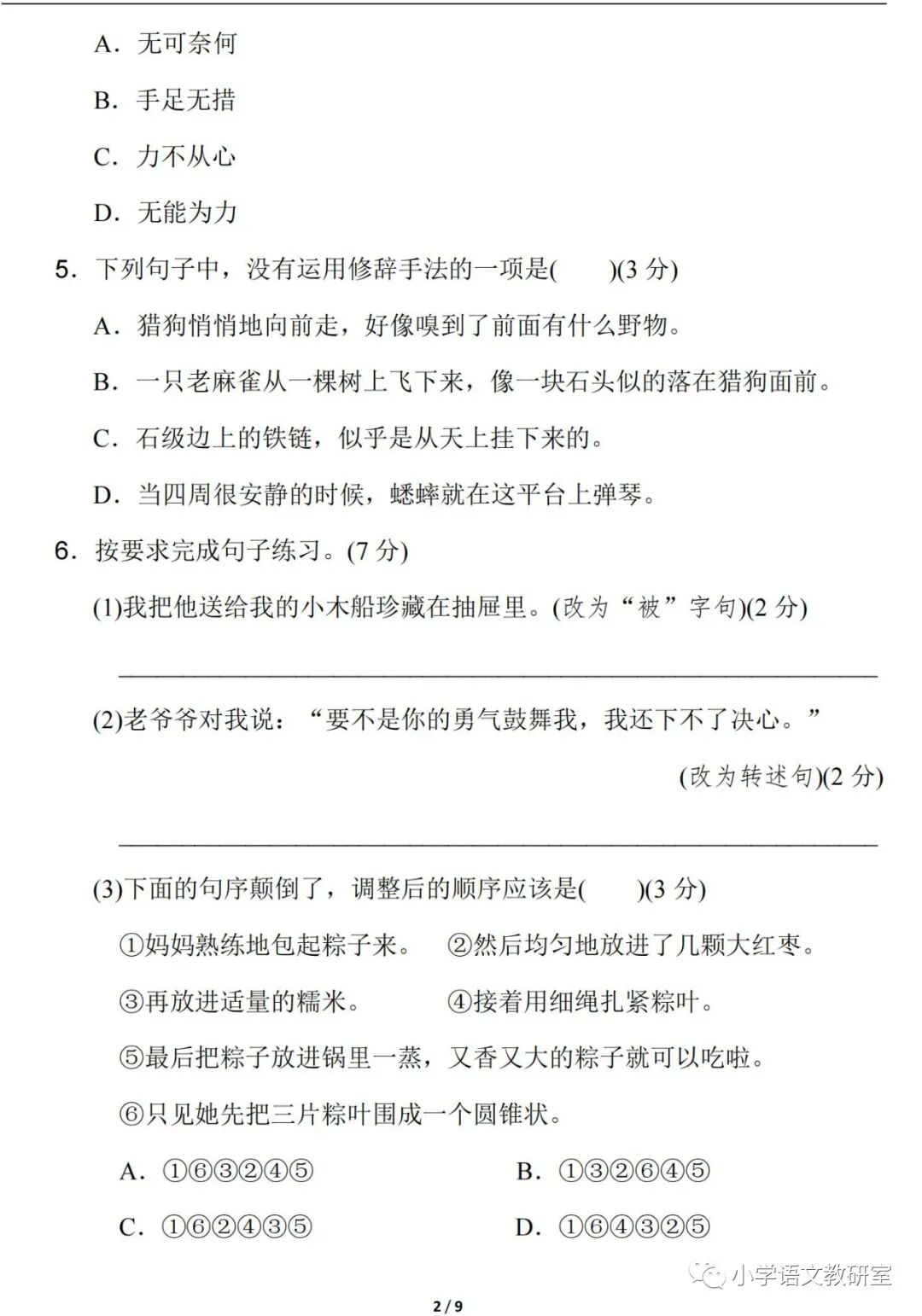 关注后发送消息“第五单元试卷”
