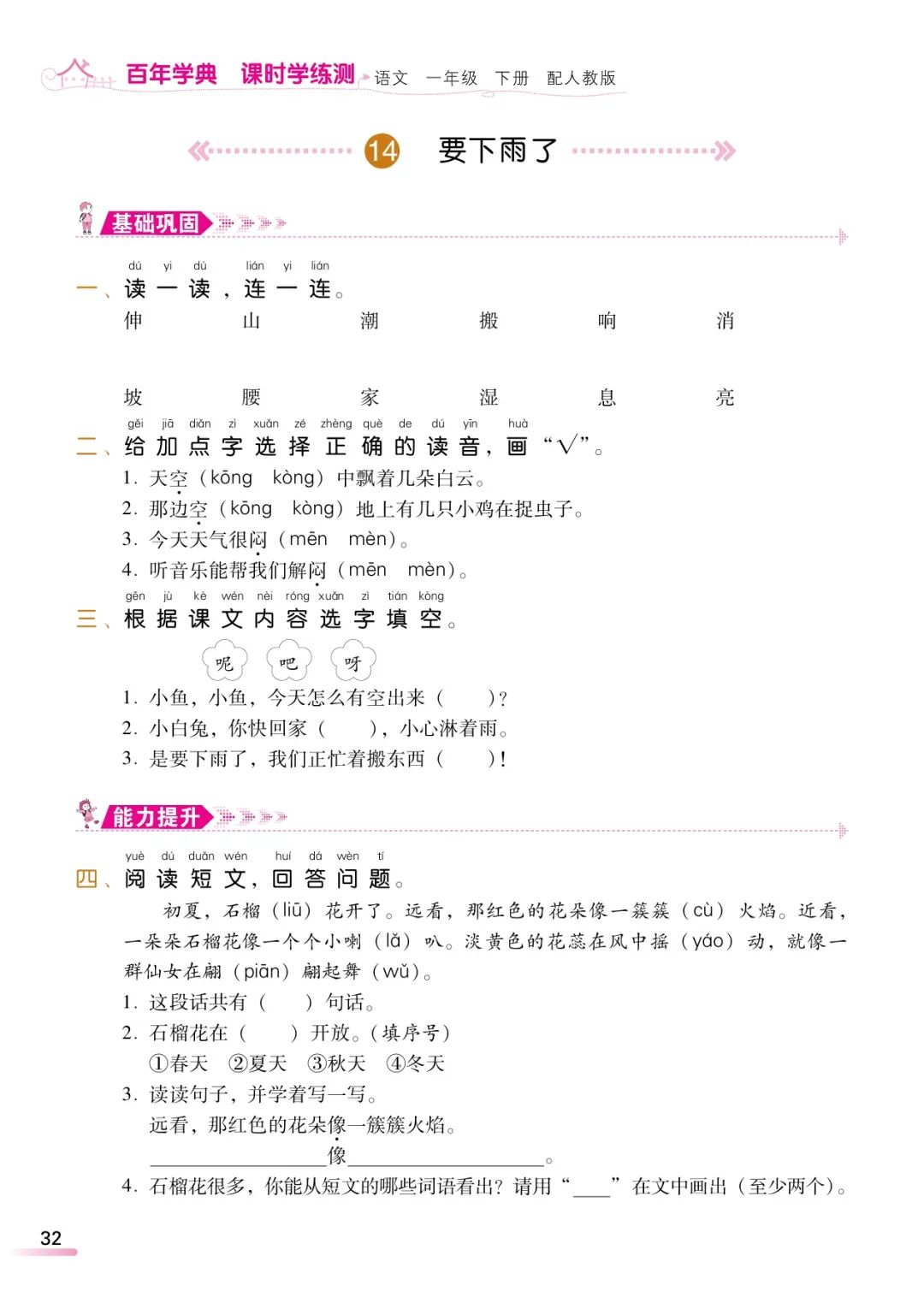 之前,教研室的老师给大家分享了一套课课练习题,家长反响不错!今天,再给大家分享一份部编版语文一年级下册精编版课时学练测,1-8单元,全册都有了。还有字词、拼音等专项练习。有需要的家长,可以领取电子版打印给孩子做一做,巩固知识点!