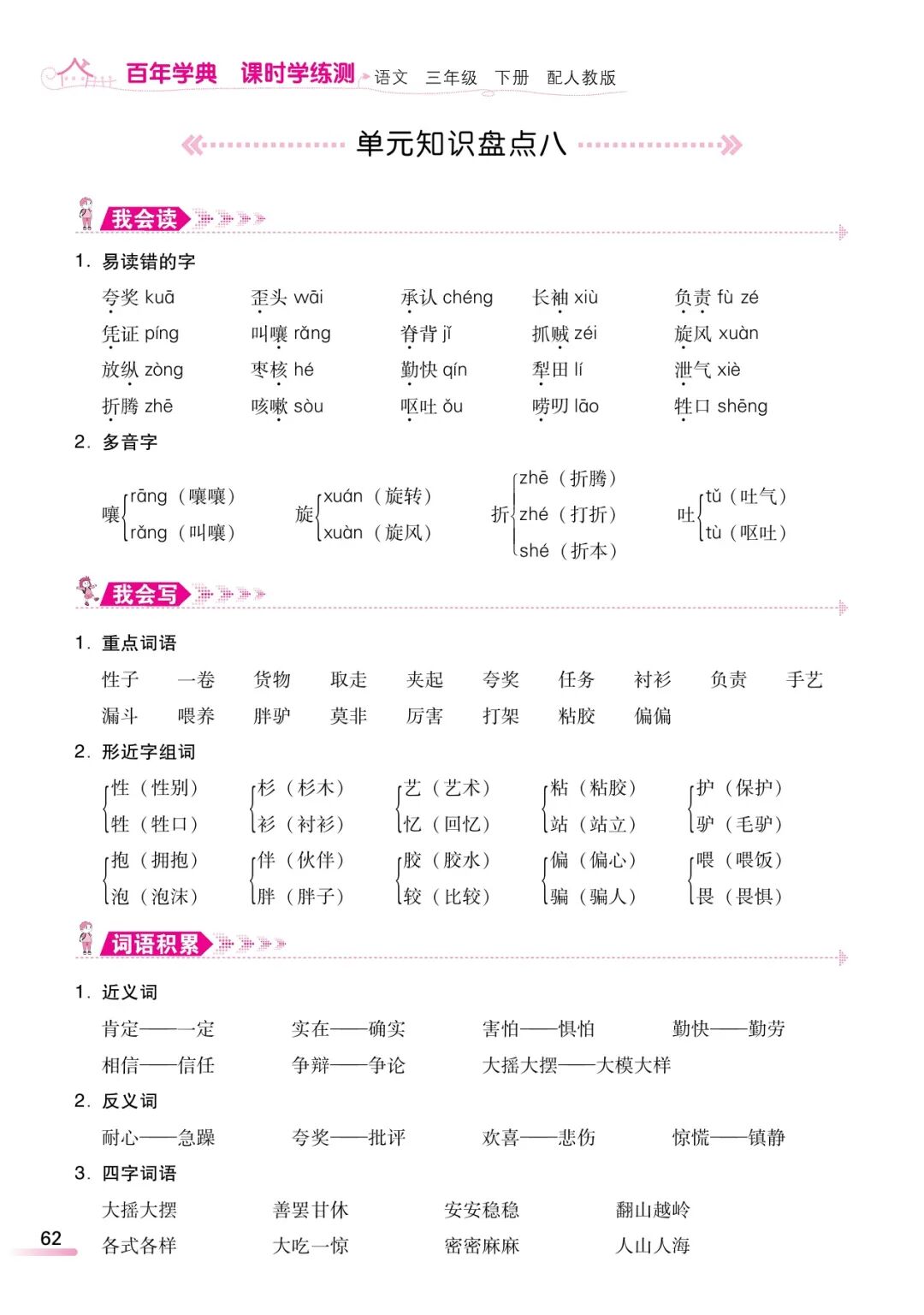 之前,教研室的老师给大家分享了一套课课练习题,家长反响不错!今天,再给大家分享一份部编版语文三年级下册精编版课时学练测,1-8单元,全册都有了。还有字词、拼音等专项练习。有需要的家长,可以领取电子版打印给孩子做一做,巩固知识点!