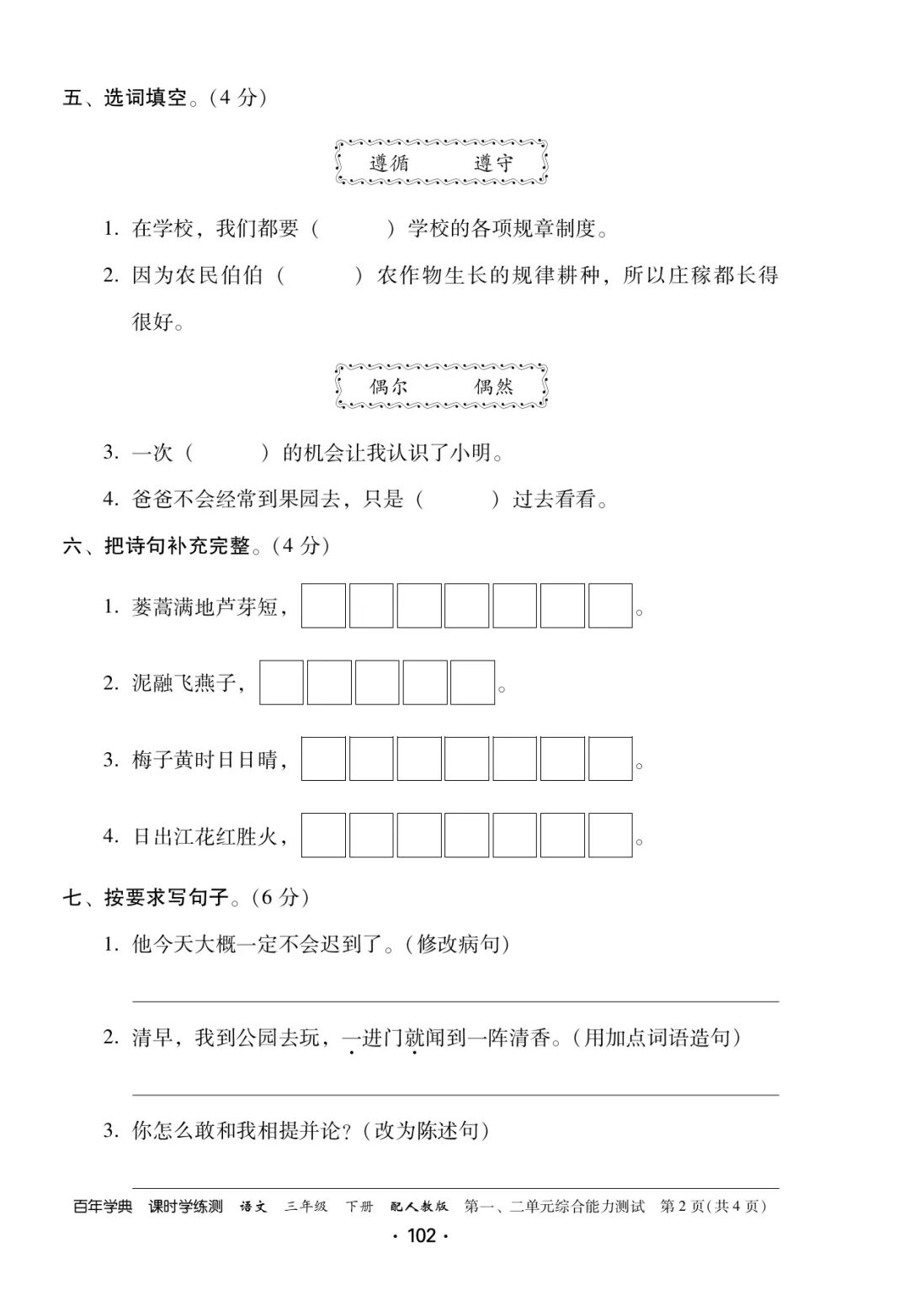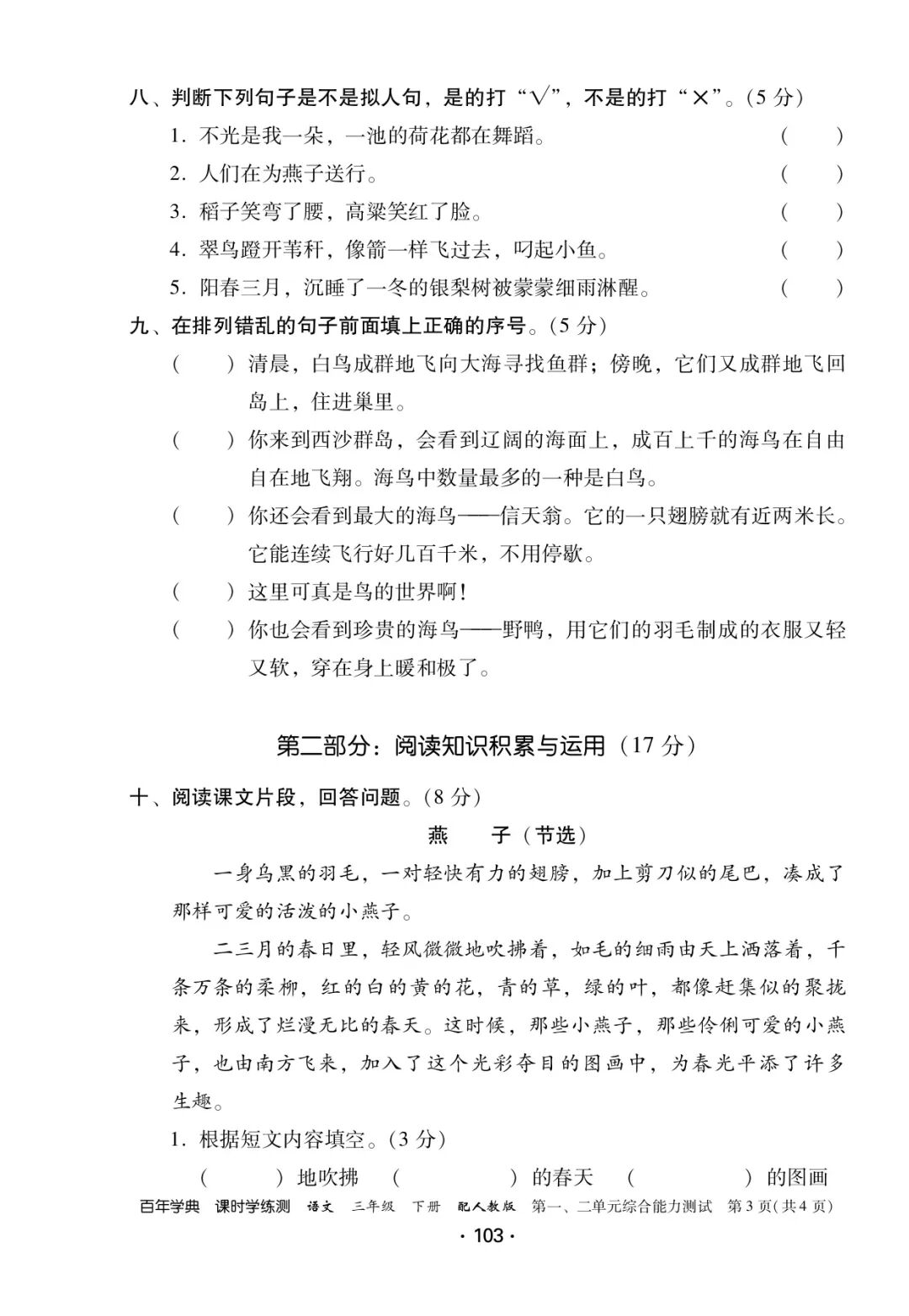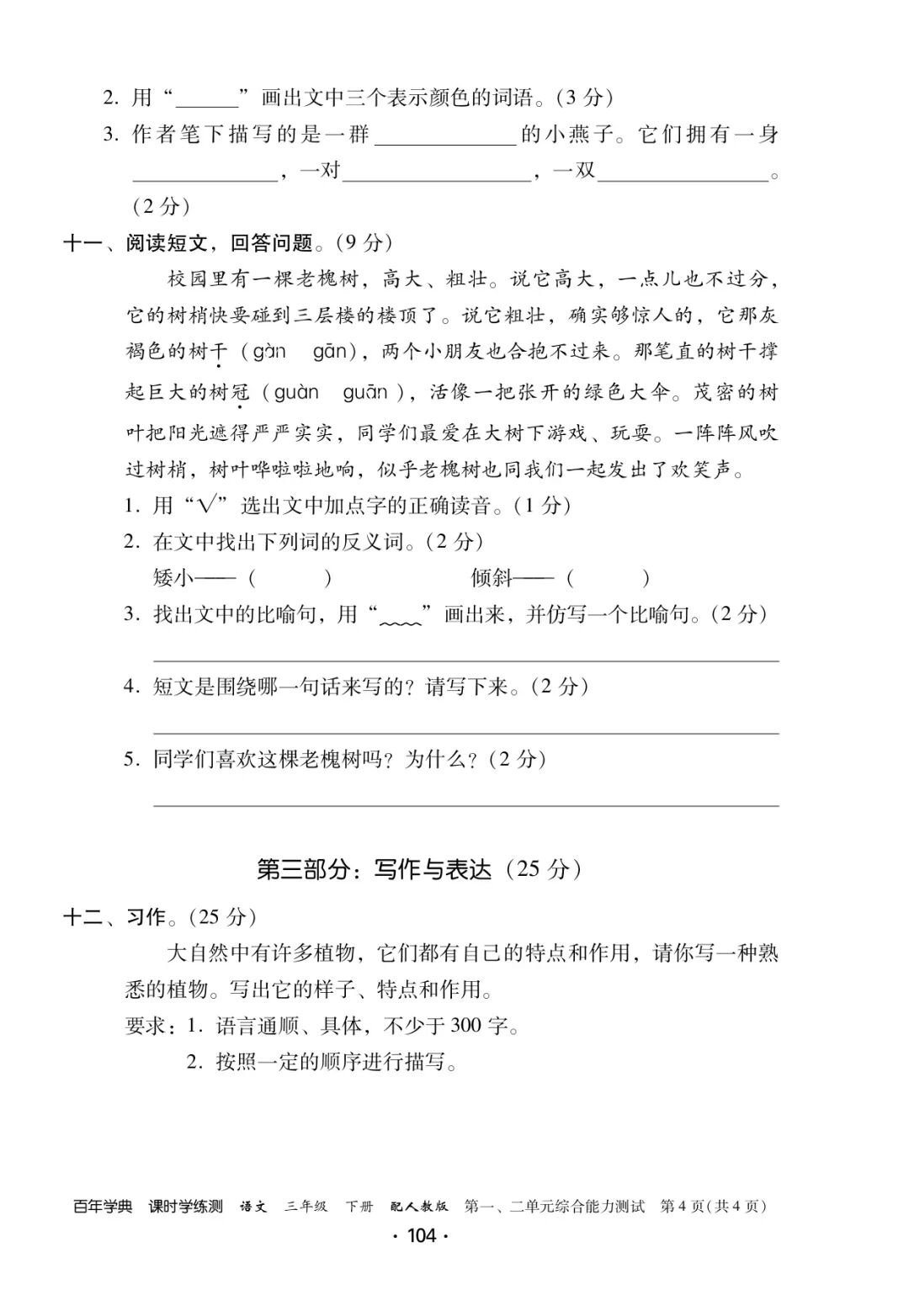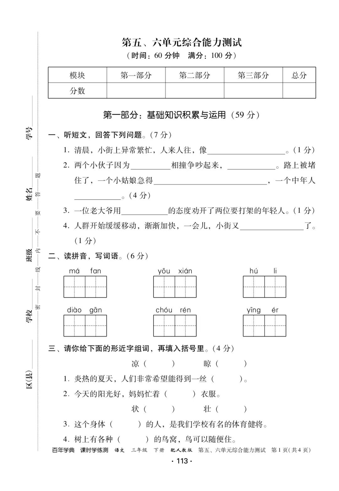 点击领取☟☟☟☟ 1年级下册《课时学练测》1-8单元+专项训练