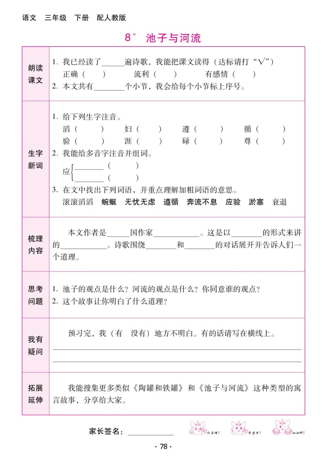 教研室的老师,昨天给大家分享了一套《语文学练测》,家长反响不错!今天,再给大家分享部编版语文三年级下册《精编版预习本》,1-8单元,全册都有了。有需要的家长、老师,可以领取电子版,打印给孩子!