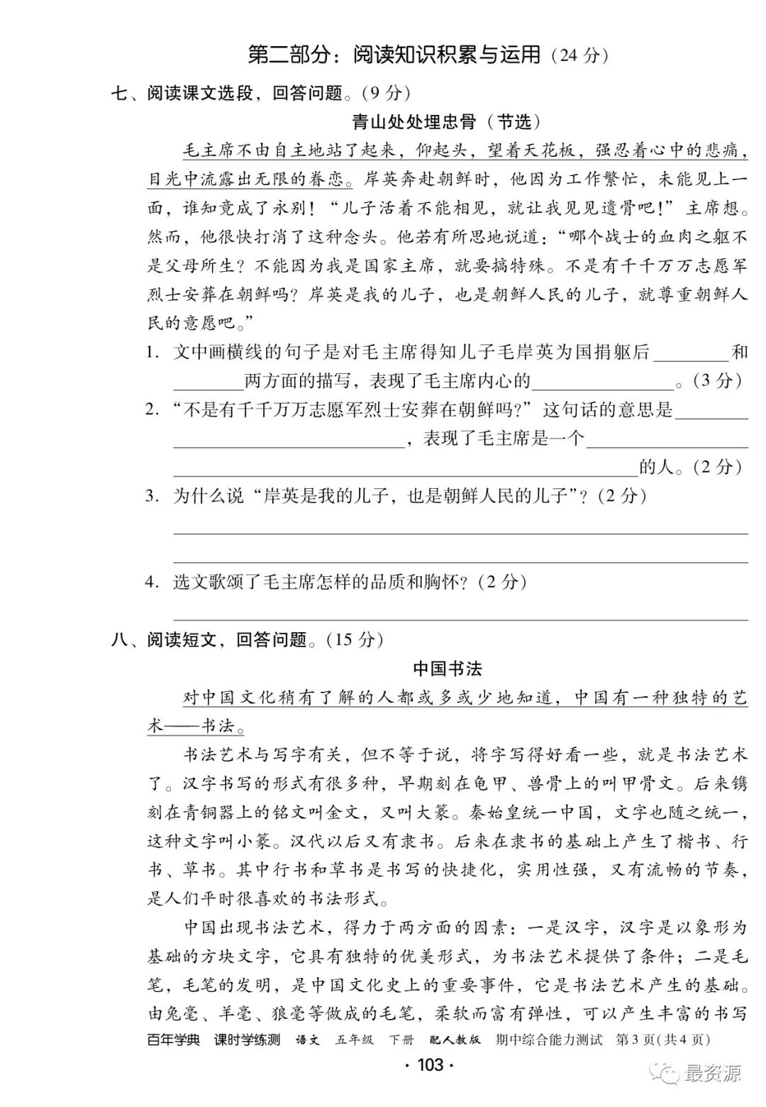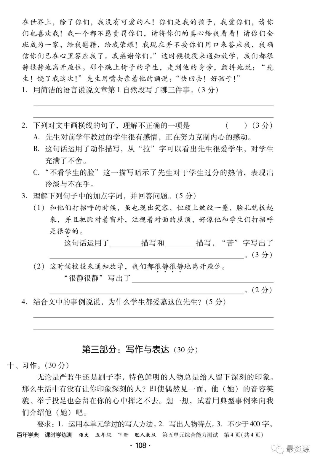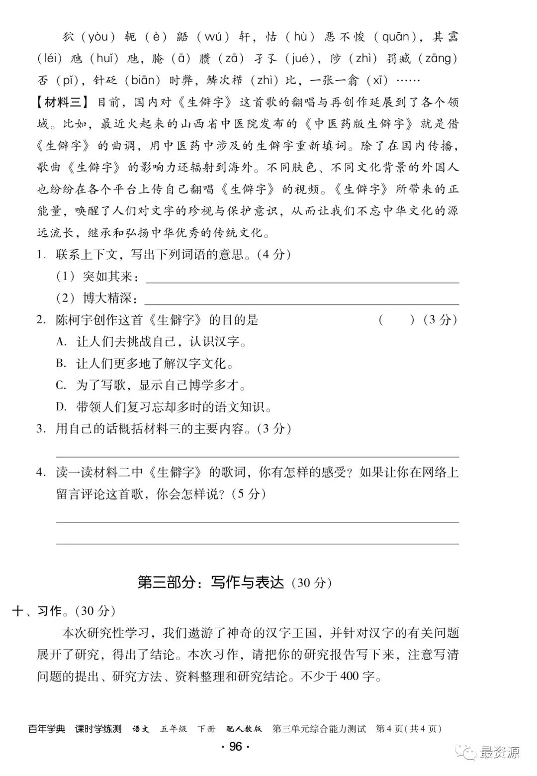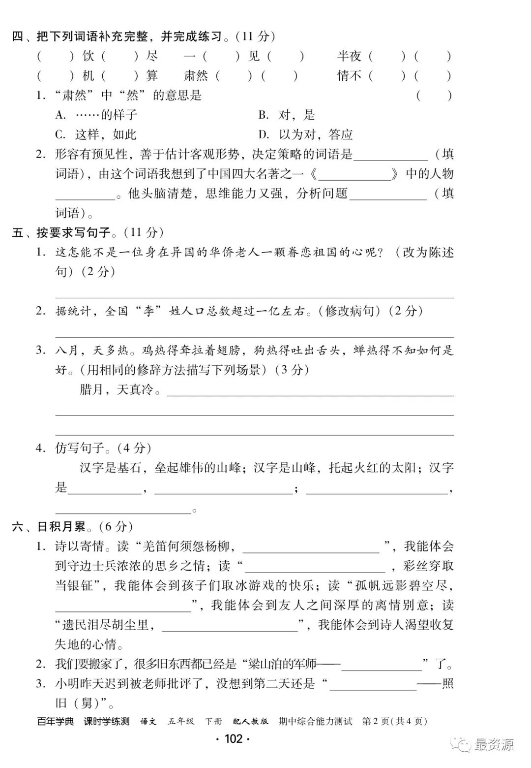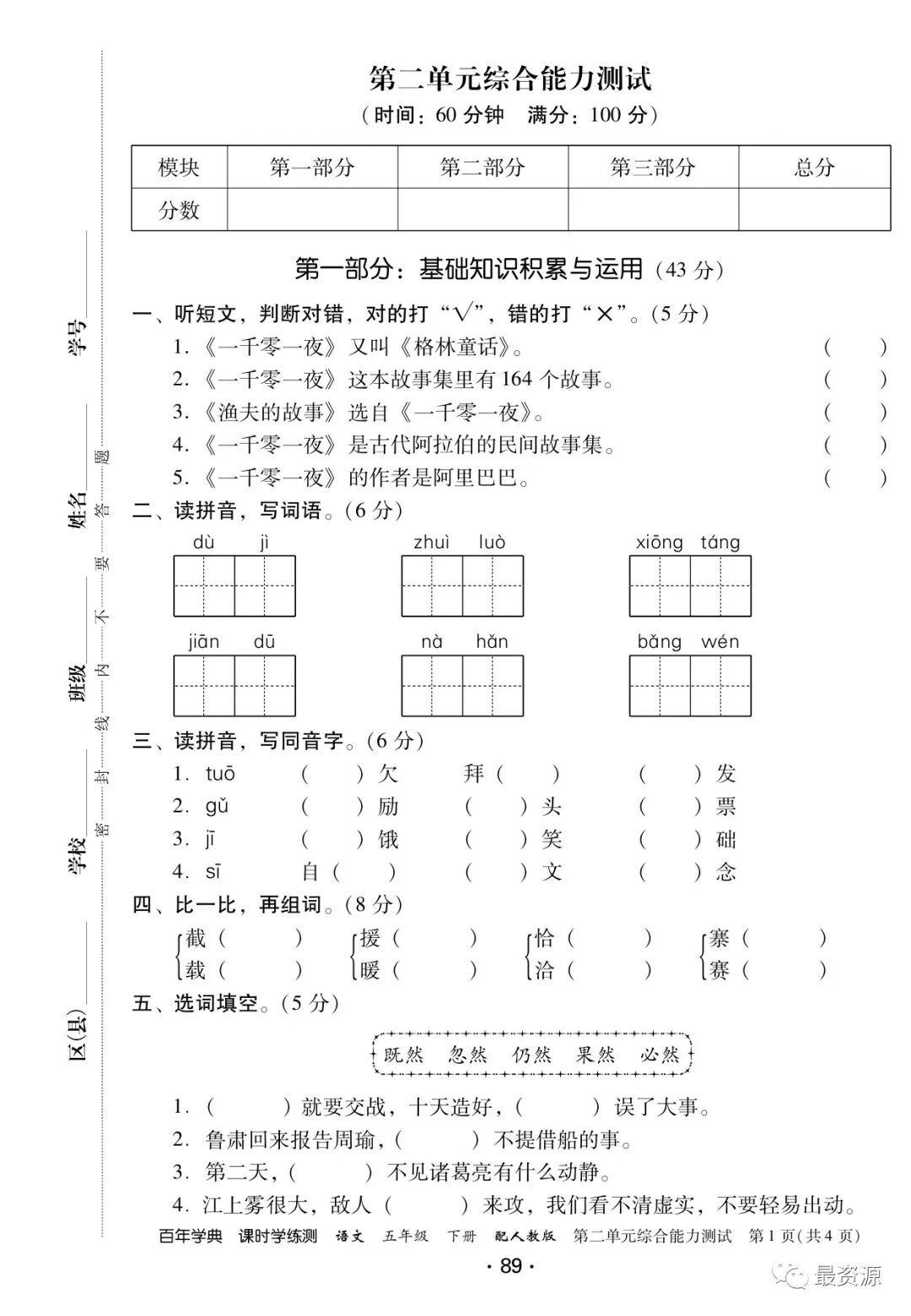 5年级下册《课时学练测》1-8单元+专项训练