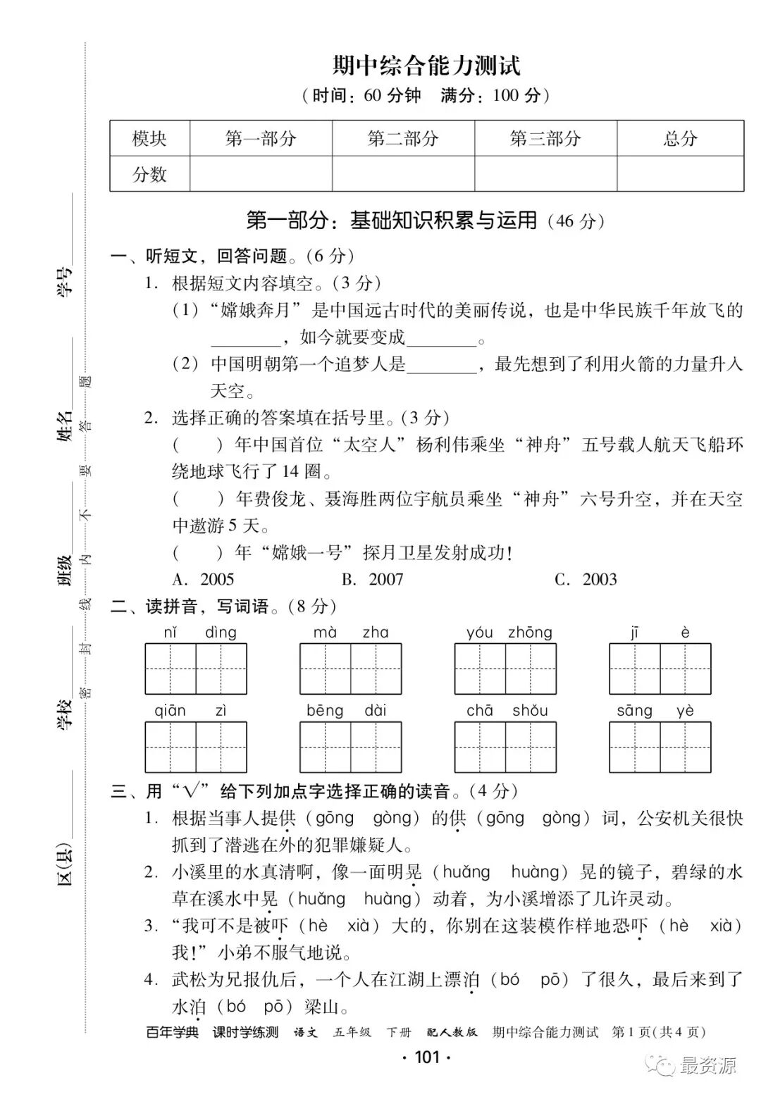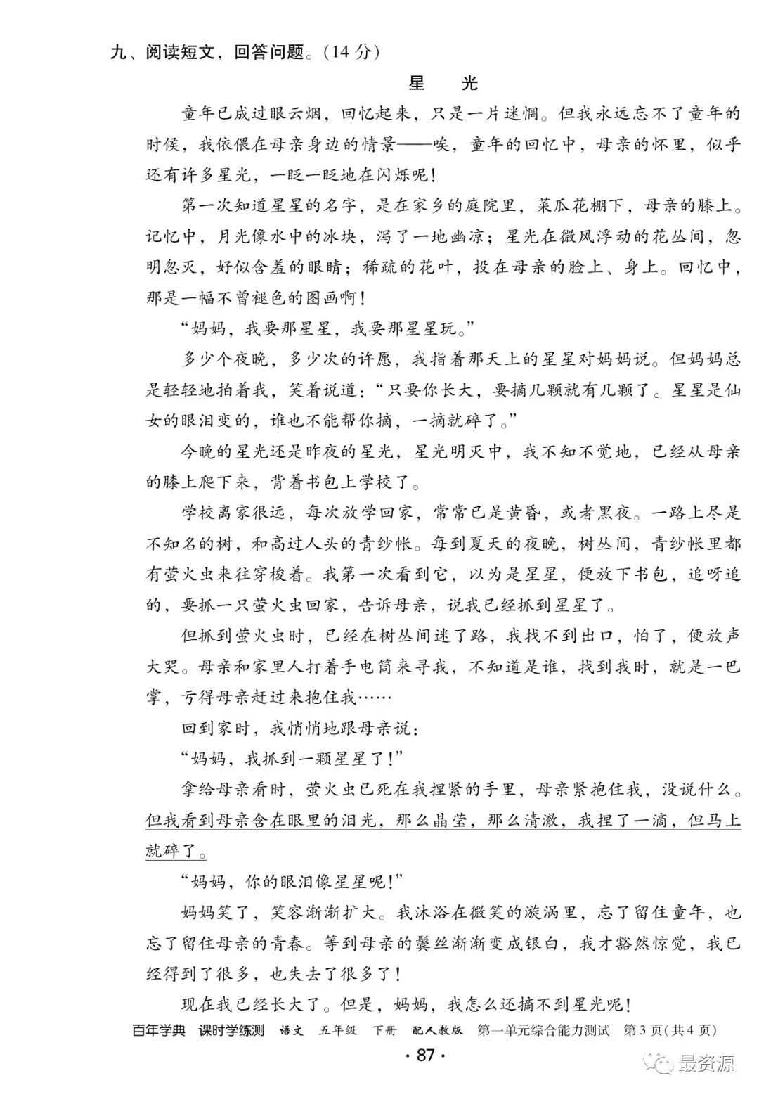 点击领取☟☟☟☟ 1年级下册《课时学练测》1-8单元+专项训练