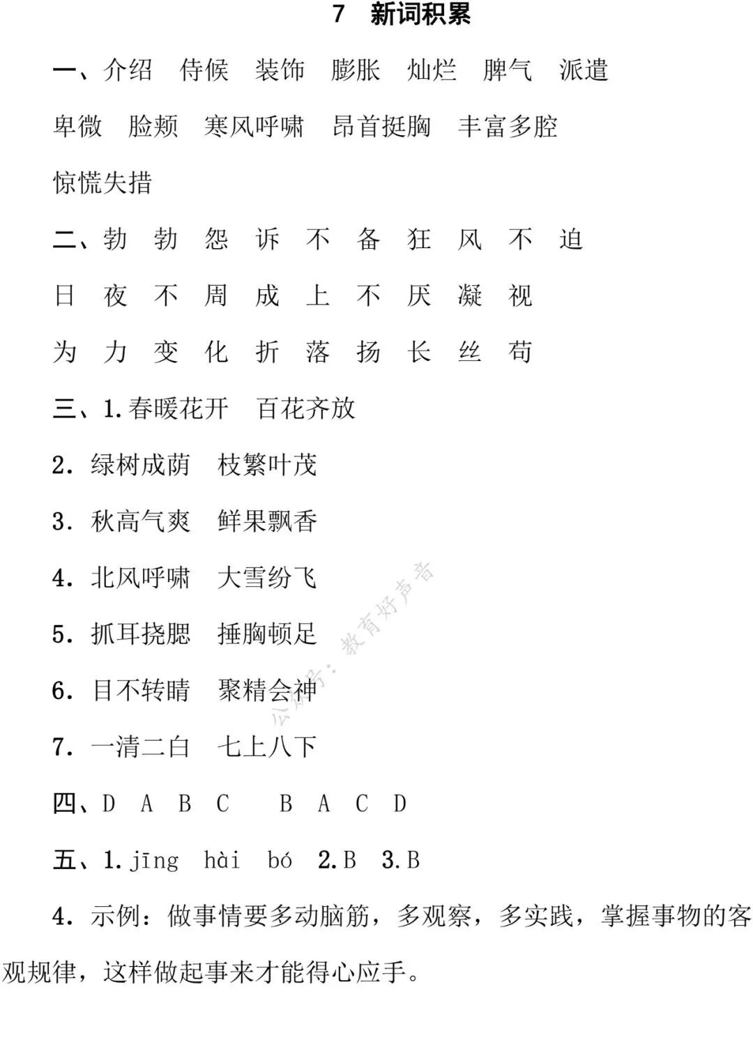 统编版语文四年级(下)期末专项训练卷7—新词积累