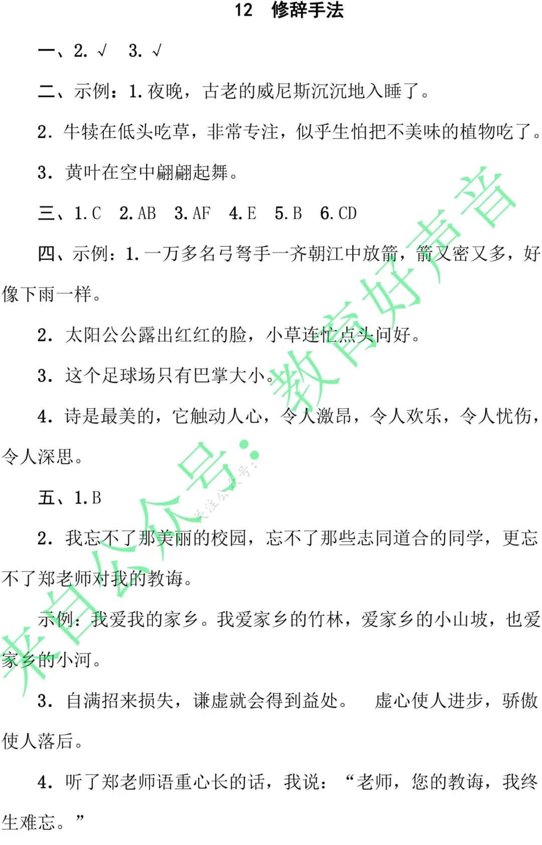 统编版语文五年级(下)期末专项训练卷12——修辞方法