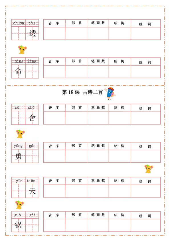 这份默写纸是根据统编版语文上册教材整理,孩子新学期就要学习,在这里教研室的老师提前分享给大家,家长可以让孩子暑假提前背起来!