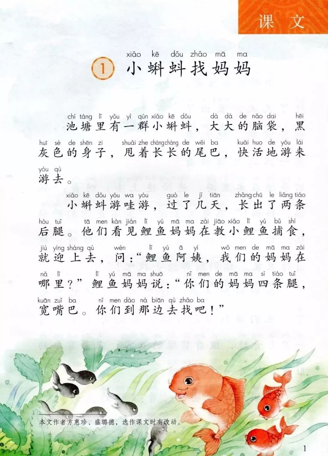 1.他们看见鲤鱼妈妈在教小鲤鱼捕食,就迎上去,问:鲤鱼阿姨,我们的妈妈在哪里?