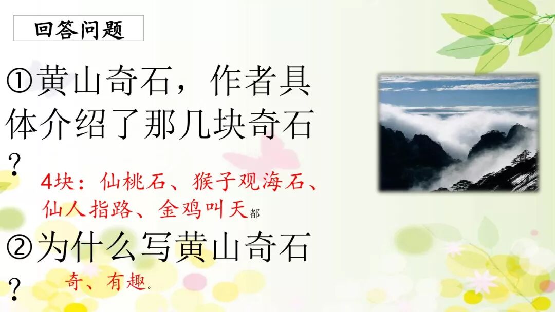 4.通过本课的学习,你知道为什么把黄山的石头称为“奇石”了吗?