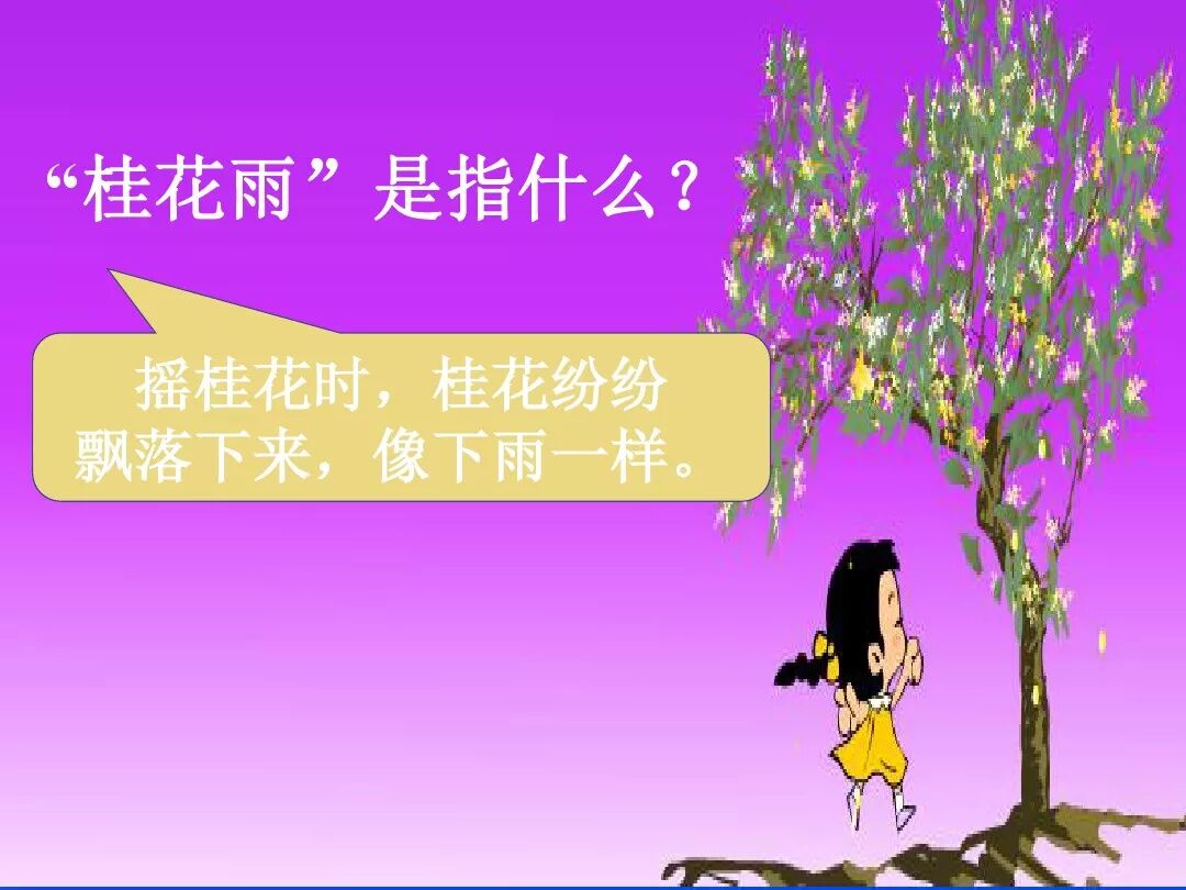 4.于是,我又想起了在故乡童年时代的“摇花乐”,还有那摇落的阵阵桂花雨。