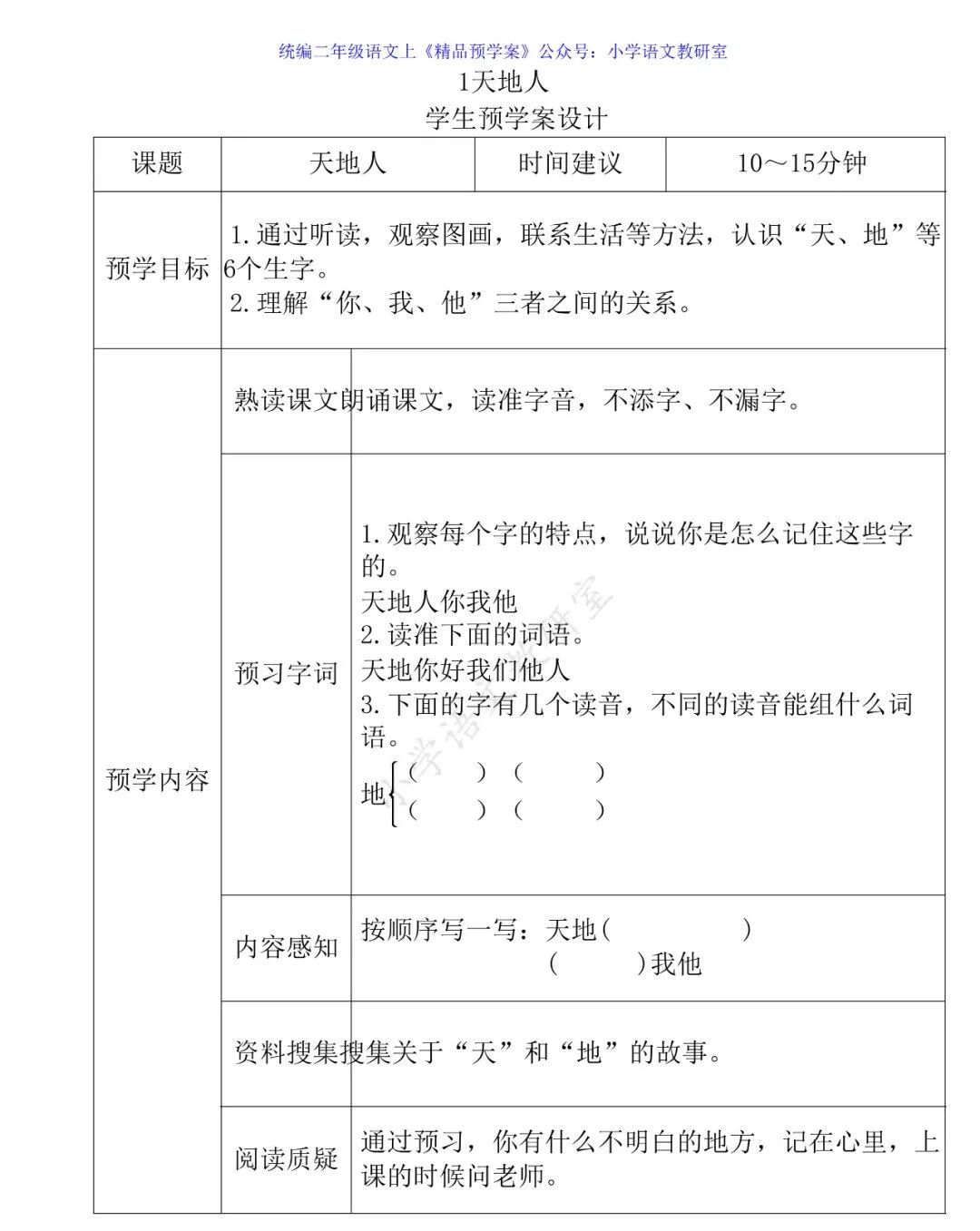 精品||统编版语文一年级(上册)全册课时预习学案,可下载
