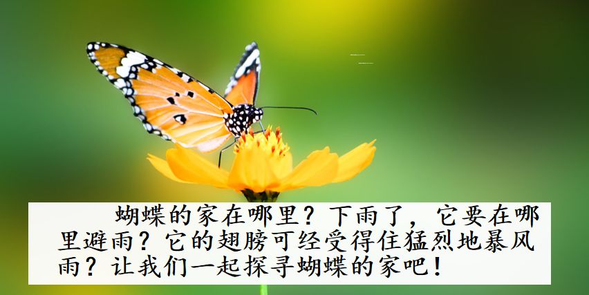 2、课文中运用对比衬托的写法,层层铺垫,反复强调“蝴蝶的家在哪里”。