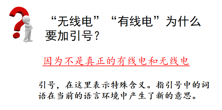2.“无线电”“有线电”为什么要加引号?