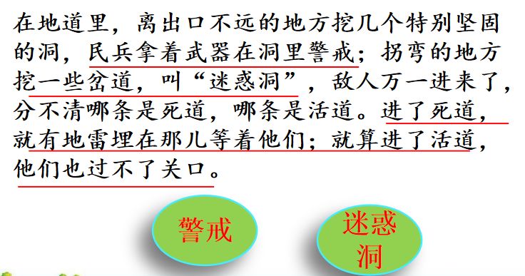 3、地道战取得成功的关键是什么?结合课文内容说一说。