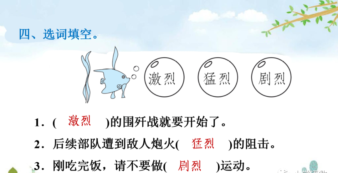 激烈的( ) ( )的沙柳树 微弱的( )