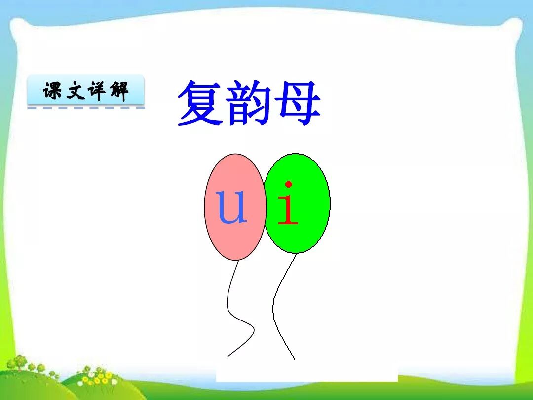 2.复韵母ui发音要领:ui是u、ei省写。先发u音,接着发ei音,口型由圆到扁。