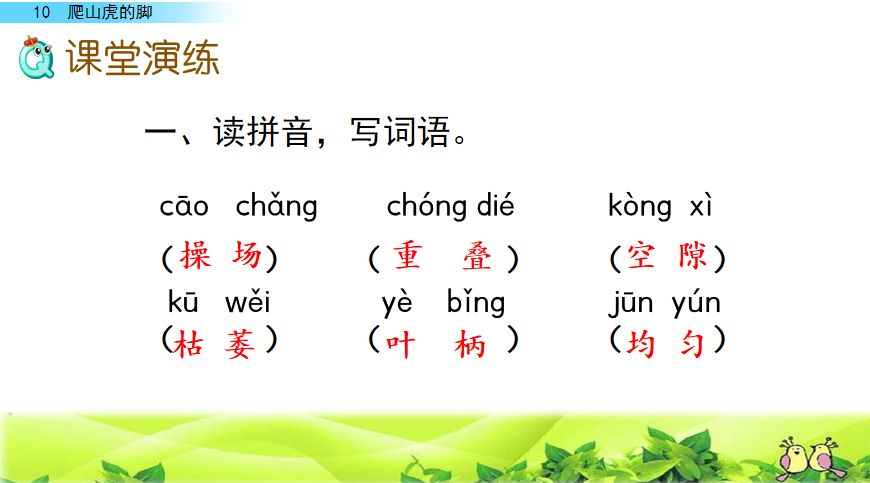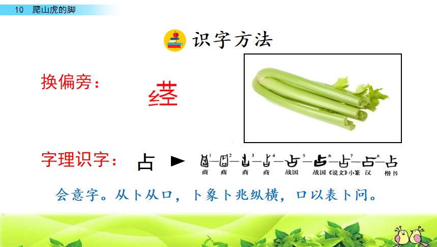 二、变化 弯曲 蜗牛 铁锅 嫩茎 小径 叶柄 生病 当铺 捕捉 触角 解决