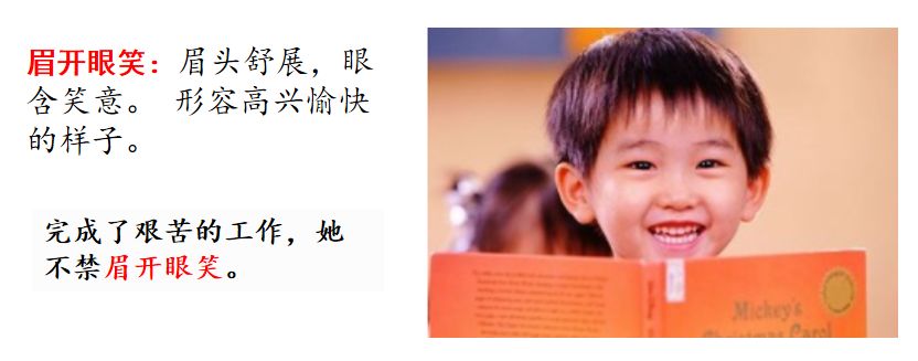 眉开眼笑:形容高兴愉快的样子。
