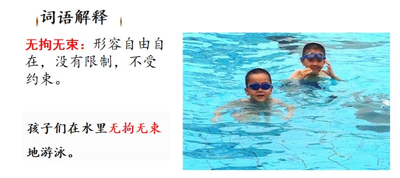 无拘无束:不受任何约束,形容自由自在。