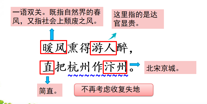 2. 暖风熏得游人醉,直把杭州作汴州。