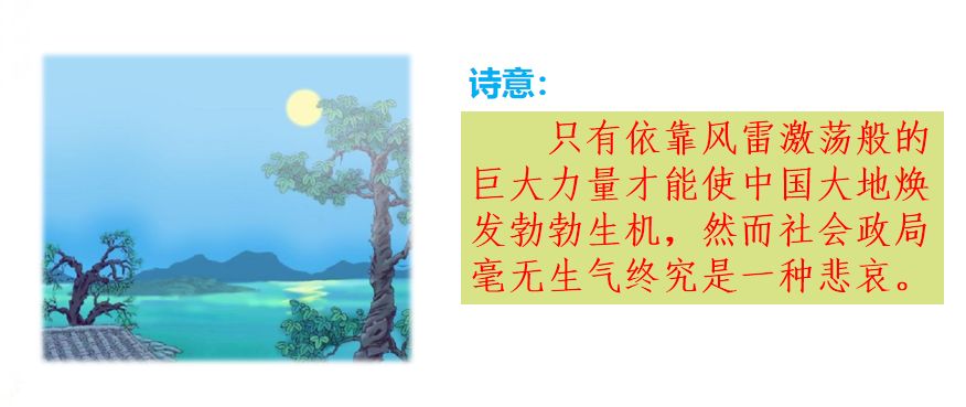 3.只有狂雷炸响般的巨大力量才能使中国大地发出勃勃生机,然而社会政局毫无生气终究是一种悲哀。