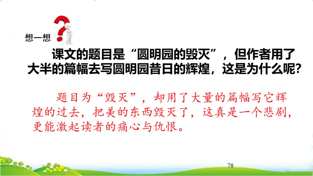 3.课文题目是“圆明园的毁灭”,作者为什么用那么多笔墨写圆明园昔日的辉煌?