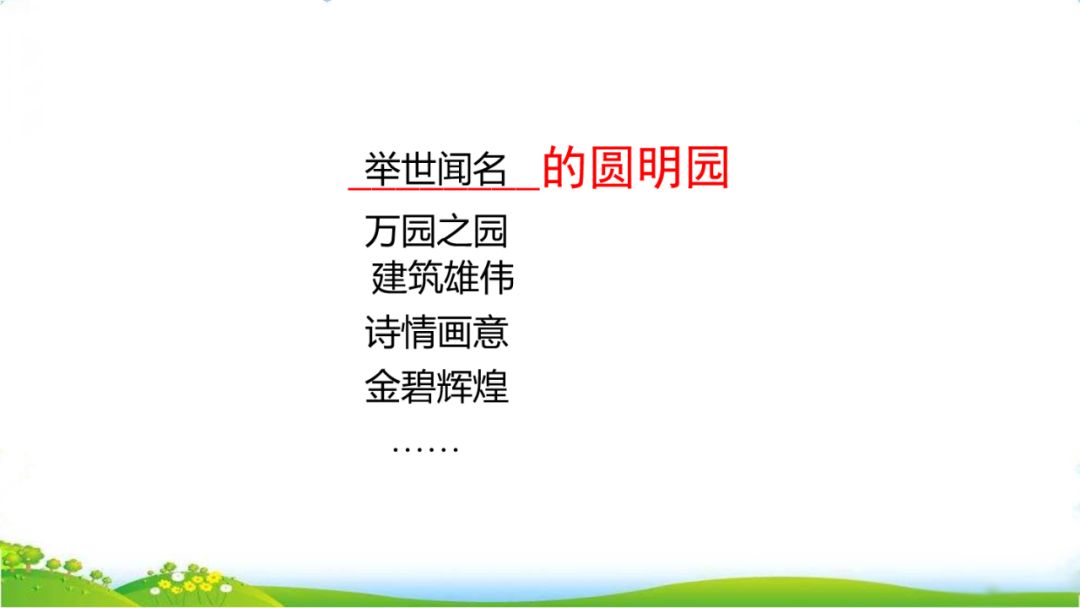 1. 圆明园的毁灭是祖国文化史上不可估量的损失,也是世界文化史上不可估量的损失!