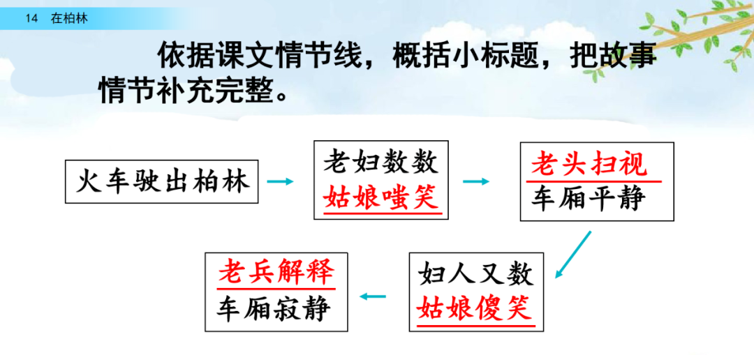 小说从一个生活小镜头平实而缓慢地切入,寥寥数语引出了故事的开端,交代了故事发生的环境,从侧面描绘了战争的残酷,看似平静的一句话,却让人读来无比沉重。对战时后备役老兵和老妇人身份、年龄和举止的描写不由得让人心生好奇一一为什么老妇人要不停地数“一、二、三”呢?两位小姑娘嘲笑老妇人的举动,却被一个老头用眼神制止了。到这里为止,故事表现的都是常规情节,也是生活中的常见现象。之后,当老妇人的奇怪言行再次引发两个小姑娘的嘲笑时,小说的情节冲突陡然从平静的叙述发生波折“老兵”忍不住道出了让人意外的答案,前面常规情节的蓄势和铺垫在这里显示了震撼人心的效果——老妇人数的原来就是她的三个儿子!老兵的话更加反映了战争的危害遍及无数家庭,年轻的人死了,老的继续打仗,被战争的残酷折磨得神志不清的老妇人也没人照顾,但是战争还在继续。老兵死了呢?再轮到什么人去?结尾处写车厢里“静得可怕”,跟上文的“平静”形成强烈反差,这是小说中唯一直接流露作者情绪的描写,发人深省。此刻,车厢里的每个人都清醒地认识到:战争带给人们的死亡和恐惧谁都无法逃脱,每个人都成了这个时代的悲剧。