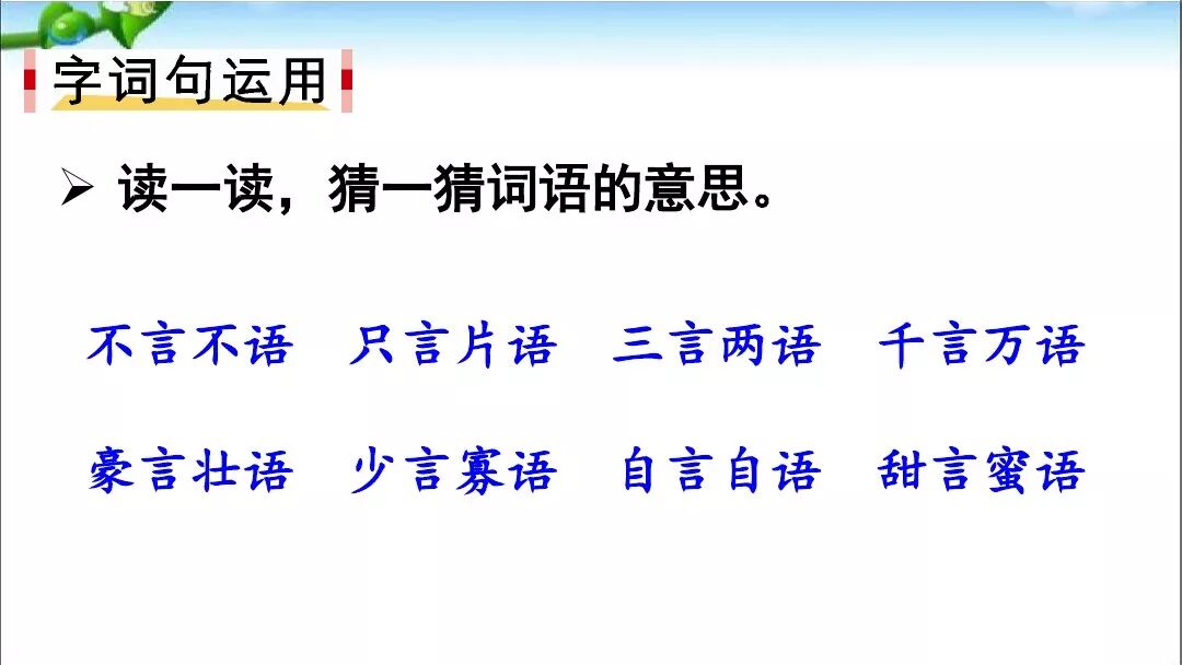 “千言万语”里边有“千”有“万”,可以猜出词义是形容说的话很多。