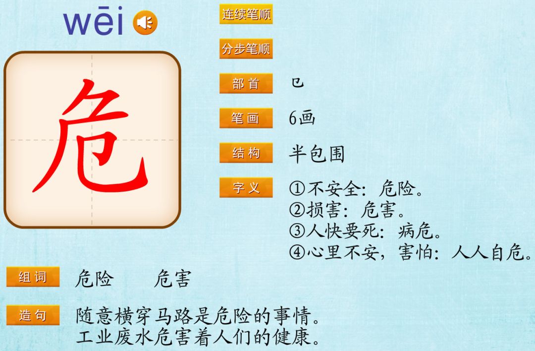 危wēi(危险、危楼、危难)