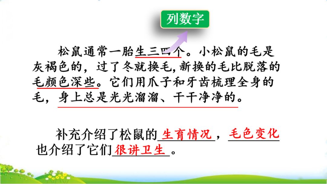 1.默读课文,把从课文中获得的有关松鼠的信息分条写下来。