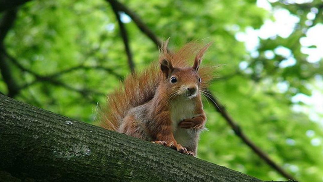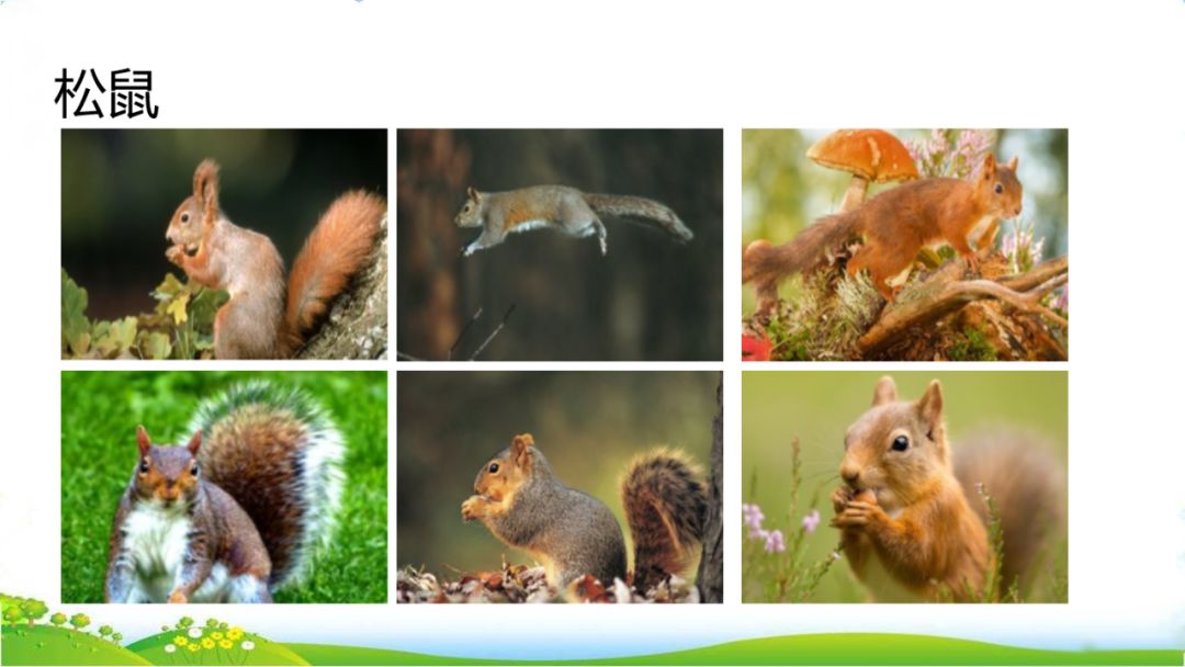 松鼠是一种漂亮的小动物,乖巧,驯良, 很讨人喜欢。它们面容清秀,眼睛闪闪发光,身体矫健,四肢轻快。玲珑的小面孔,衬上一条帽缨的美丽尾巴,显得格外漂亮。尾巴老是翘起来,一直翘到头上,自己就躲在尾巴底下歇凉。它们常常直竖着身子坐着,像人们用手一样,用前爪往嘴里送东西吃。可以说,松鼠最不像四足兽了。