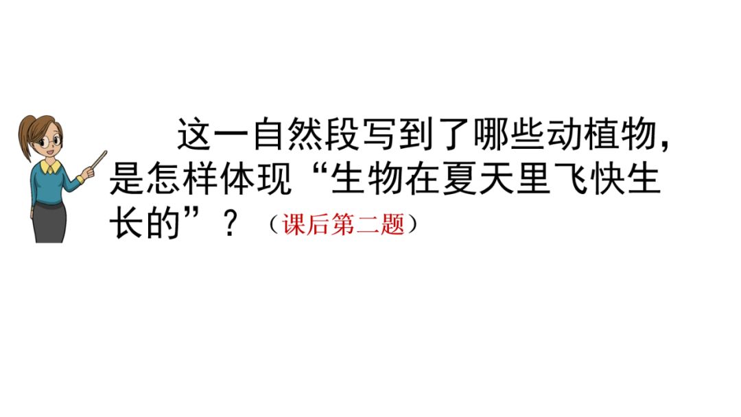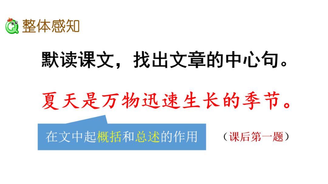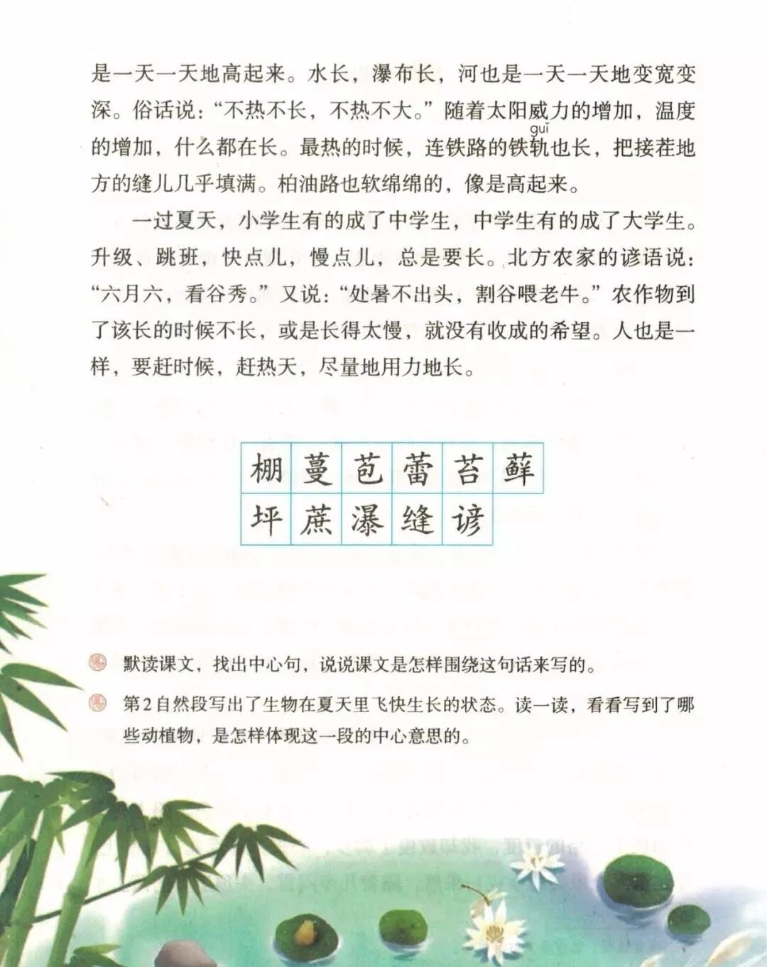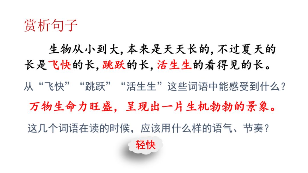 本文是一篇优美的散文,通过描写夏天里万物迅速生长的自然现象,说明人要把握时间,“尽量地用力地长”的道理。