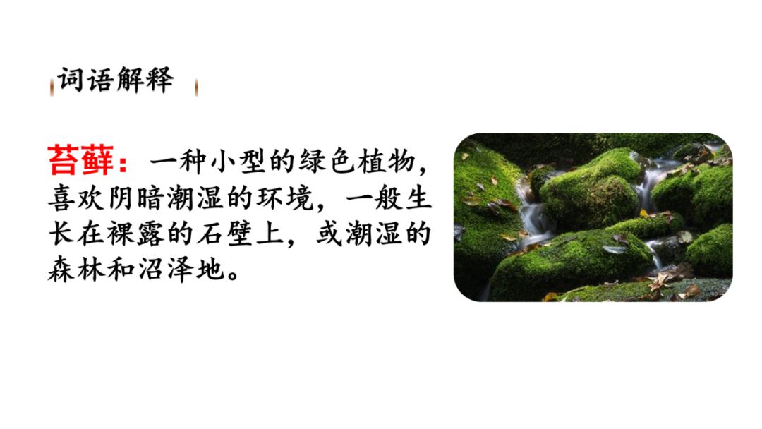 苔:青苔 苔藓 苔原 苔斑 苔痕