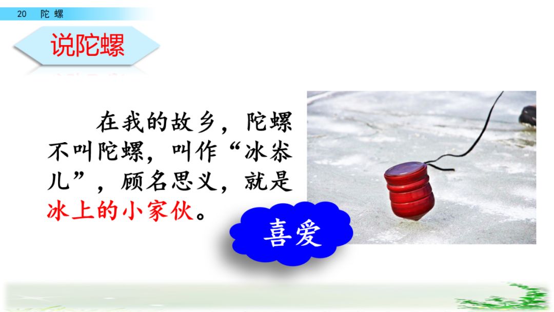 在我的故乡,陀螺不叫陀螺,叫作“冰尜儿”,顾名思义,就是冰上的小家伙。