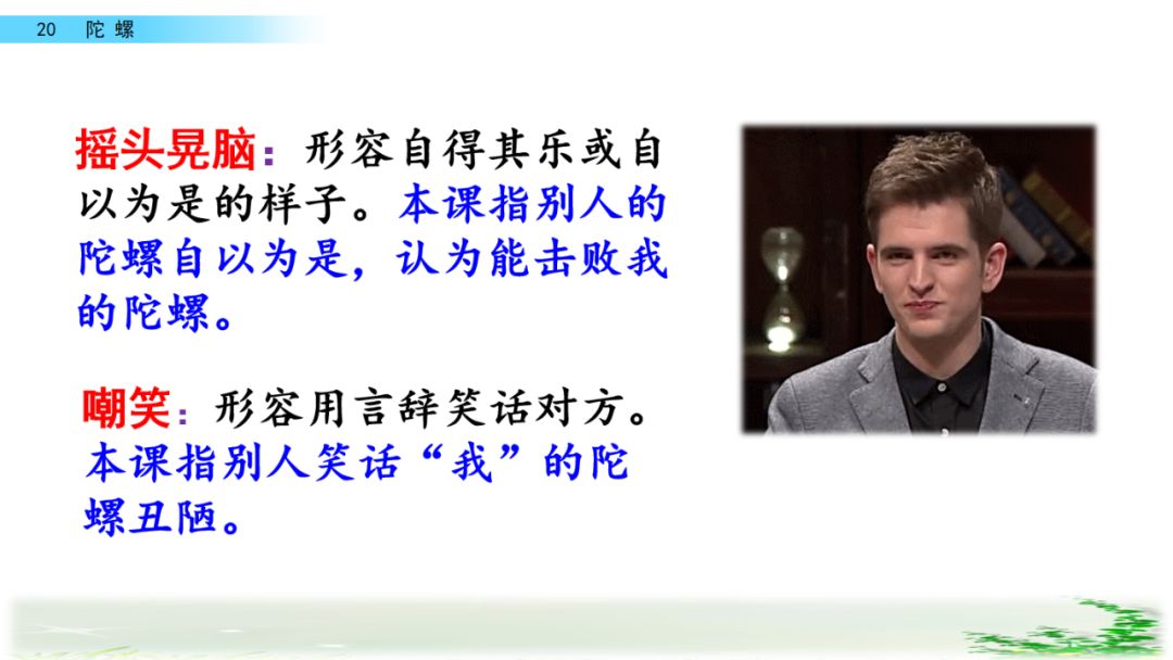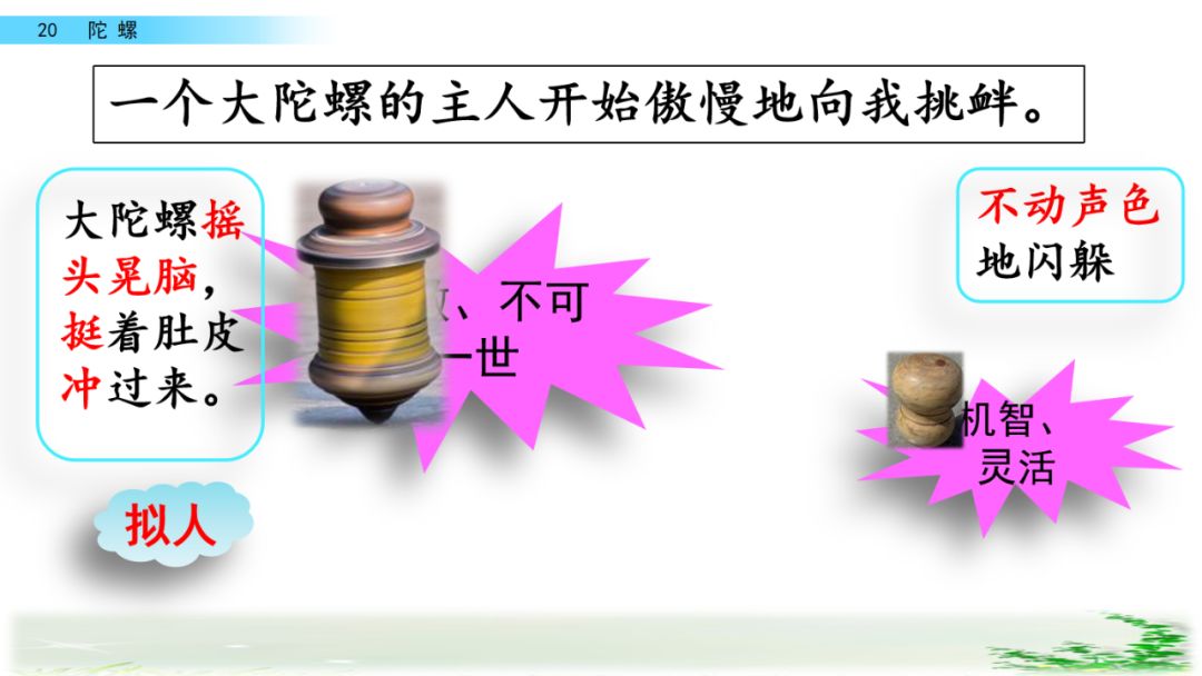 (2)这消息曾使我一整天处于恍惚的状态,老想着那只陀螺英武的风姿。