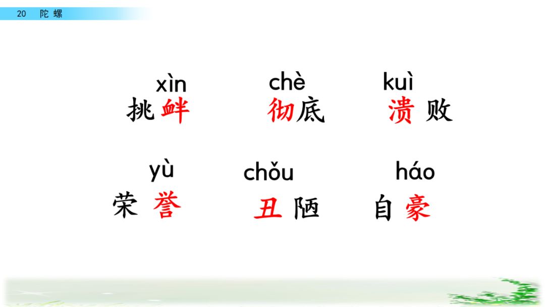 ( )陀螺 ( )鼻涕 ( )头( )脑
