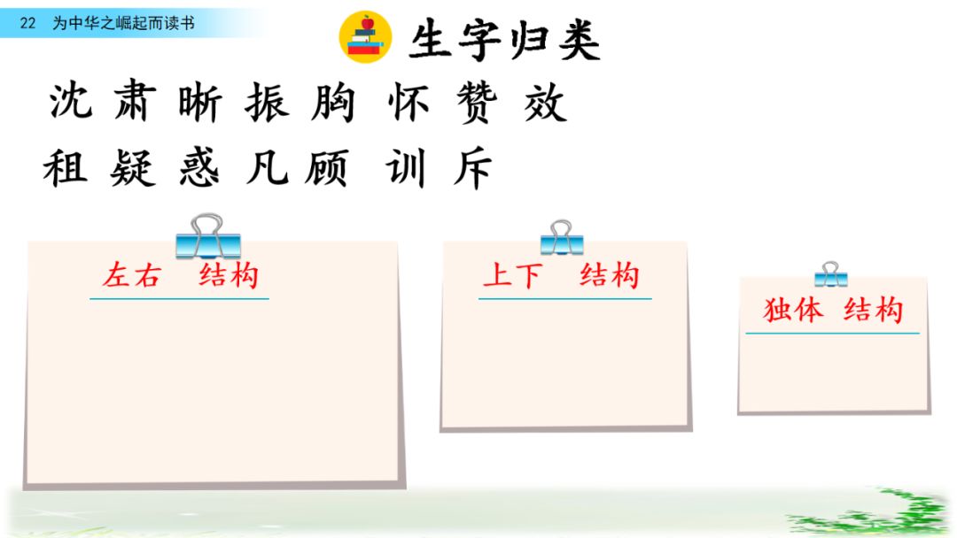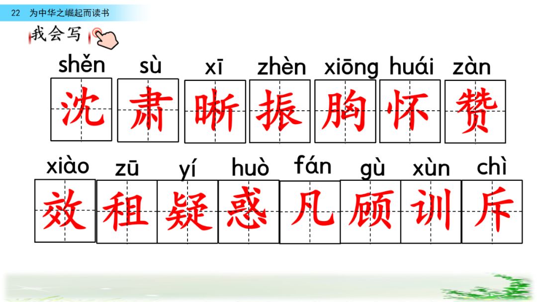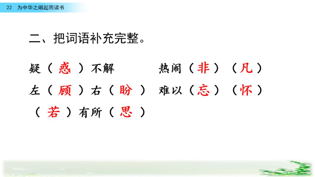 二、胸怀 疑惑 训斥 中华不振 肃 晰 凡 辱 租 赞