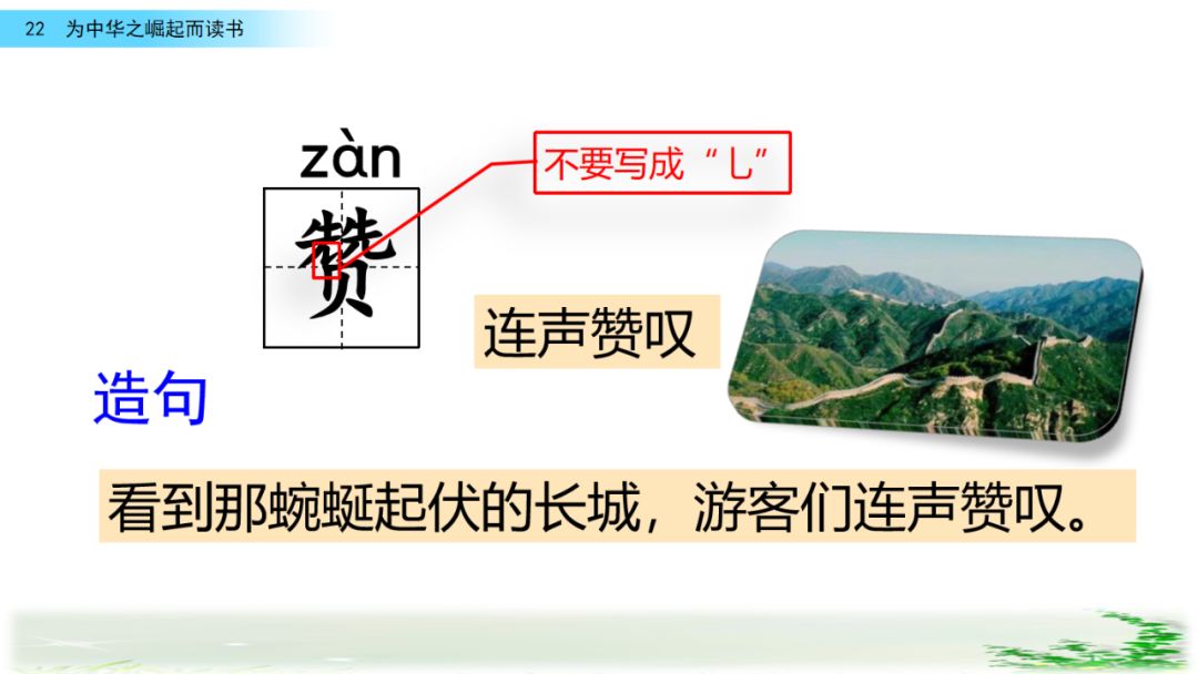 示例1:我们仍然要“为中华之崛起而读书”。中国现在还是发展中国家,中国要发展壮大,无论是发展科技还是增强软实力,都需要我们好好读书。示例2:为实现中华民族伟大复兴的中国梦而读书。
