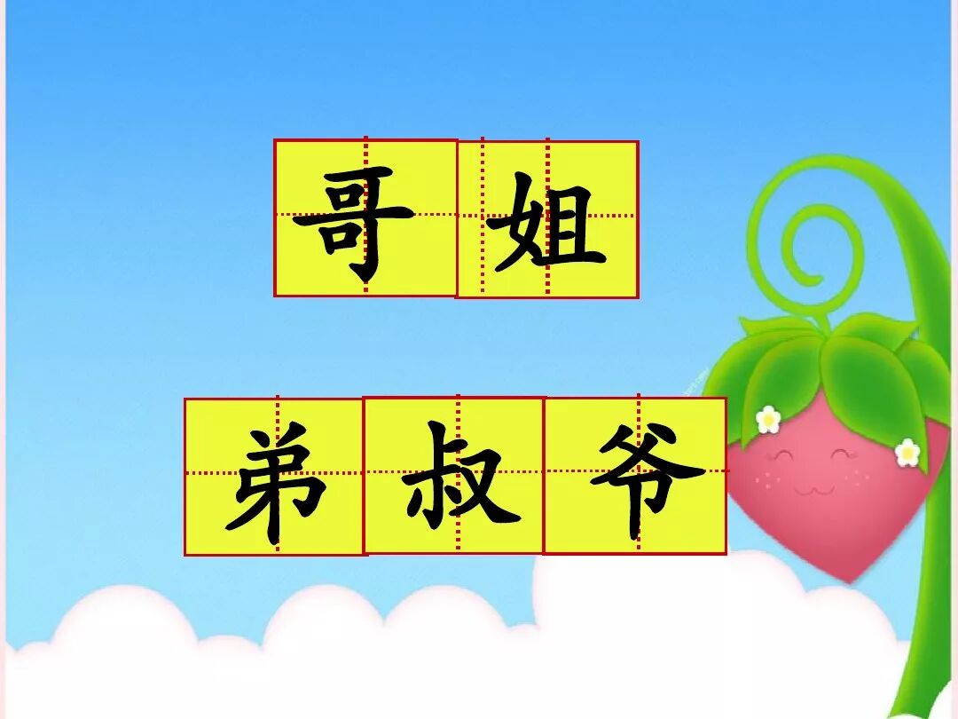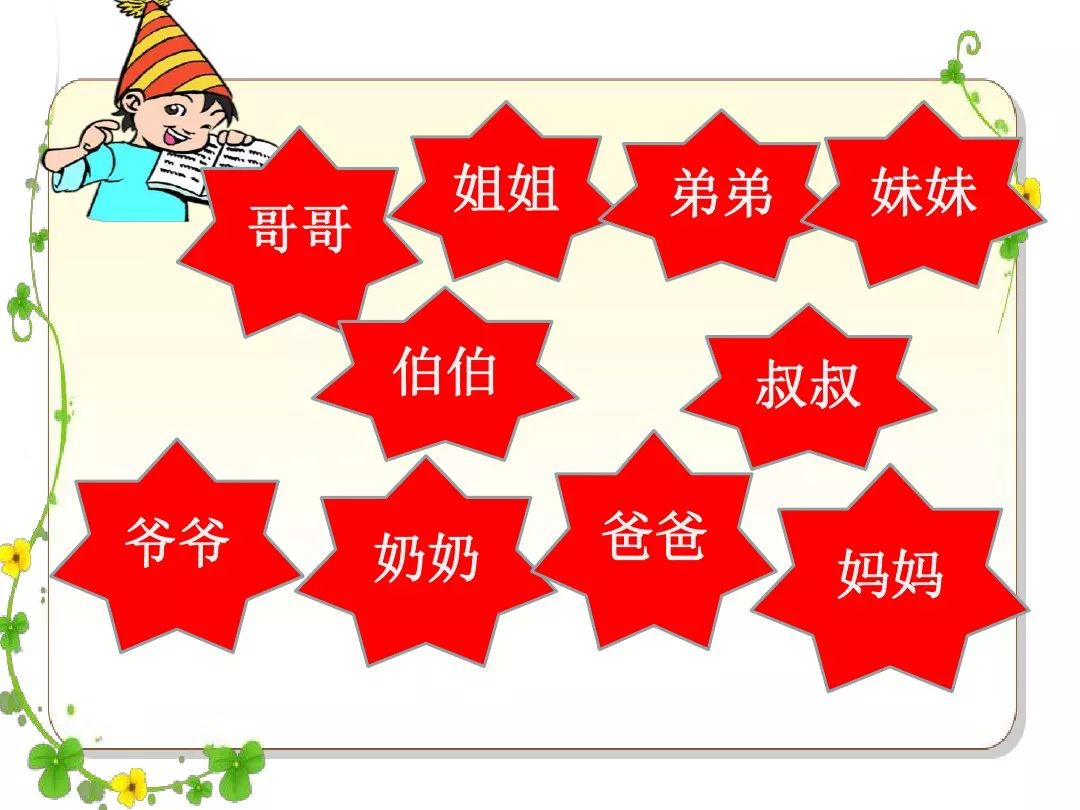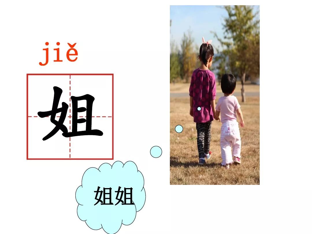 妈、奶、姐、妹:这些字都有女字旁,都与女性有关。带女字旁的字还有“姑、娘、姨”等。