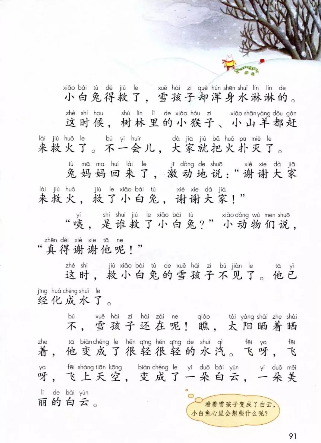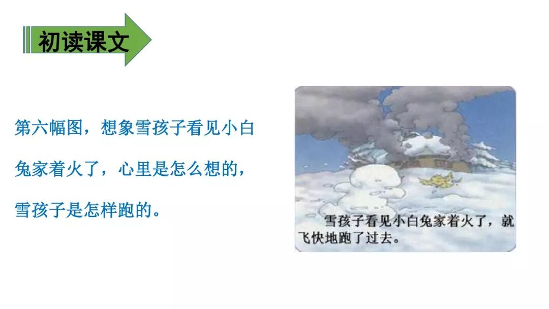 3.雪孩子看到小白兔家着火后,是怎样做的?