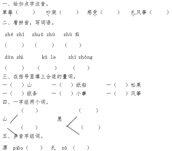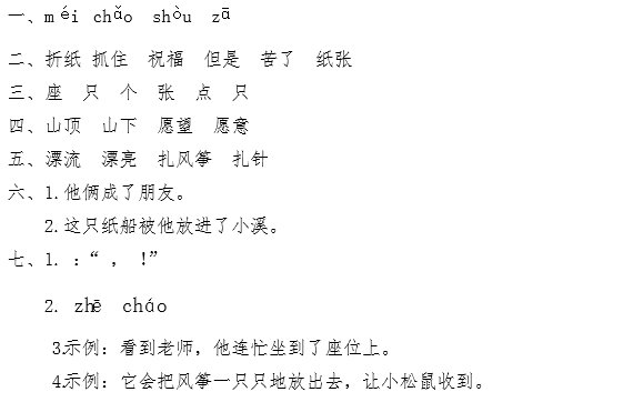 1.小熊也想折一只纸船送给松鼠,可是纸船不能漂到山上去。怎么办呢?他想了想,就扎了一只风筝。
